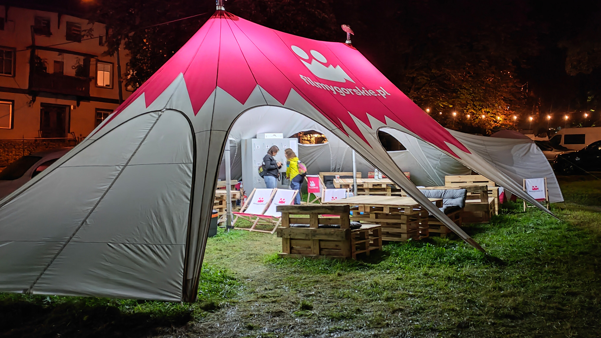 Nie było także problemu z dostępnością toalet. Na zewnątrz kabiny typu ToiToi, plus „porcelanki” w Kinoteatrze. Na polu namiotowym dodatkowo mobilne umywalki. Nie zwróciłem uwagi na kwestię pryszniców (na mapie żadnych nie znalazłem, osobiście też), ale turyści górscy zwykle mają na takie kwestie swoje patenty 😉