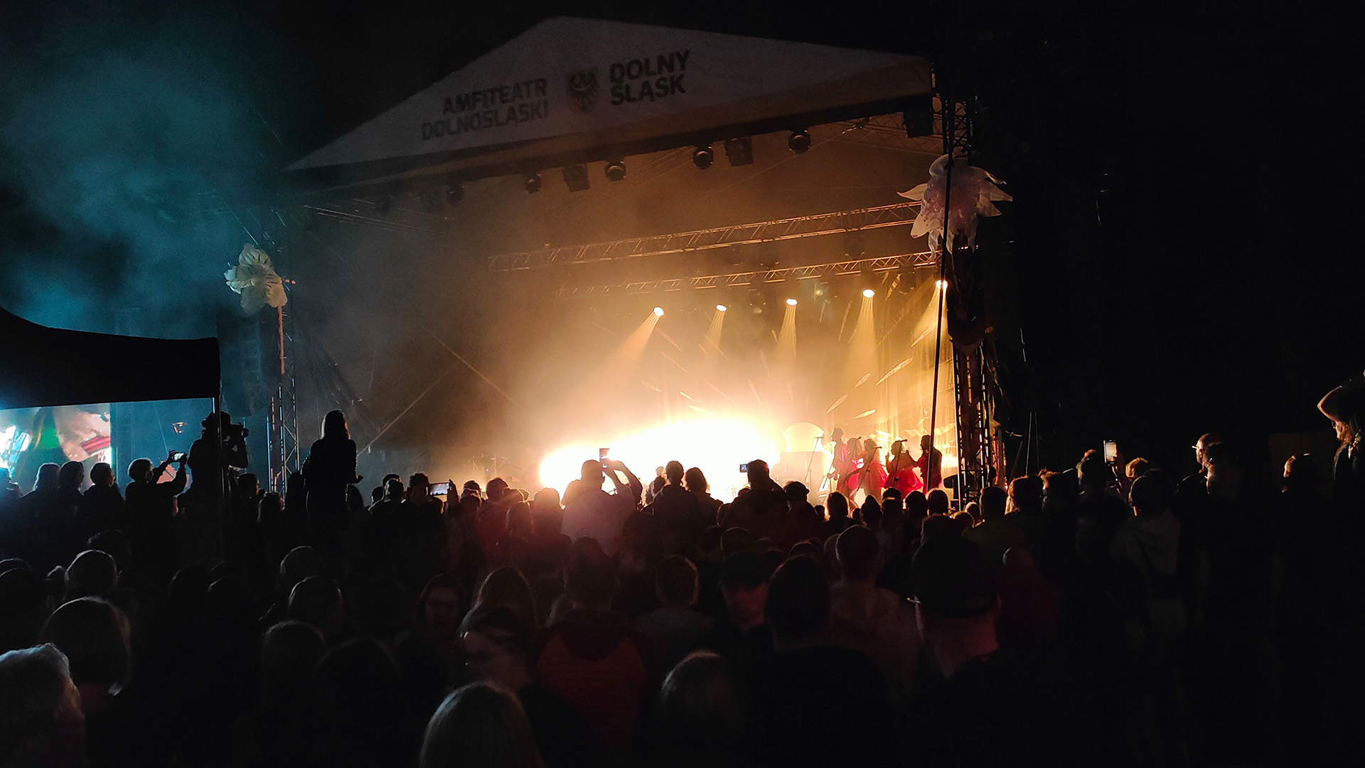 No i faktycznie, ilość osób na metr kwadratowy znacznie wzrosła, ale nadal było względnie cicho (pomijając program artystyczny na scenie). Nikt się nie darł, nie gwizdał, jak ktoś chciał pogadać, to odchodził z rozmówcą na bok, żeby się nie przekrzykiwać. Dla mnie to był szok – w pozytywnym tego słowa znaczeniu. Ot, spokojni ludzie słuchający muzyki, okazjonalnie z „pianką” w ręce. Me gusta.