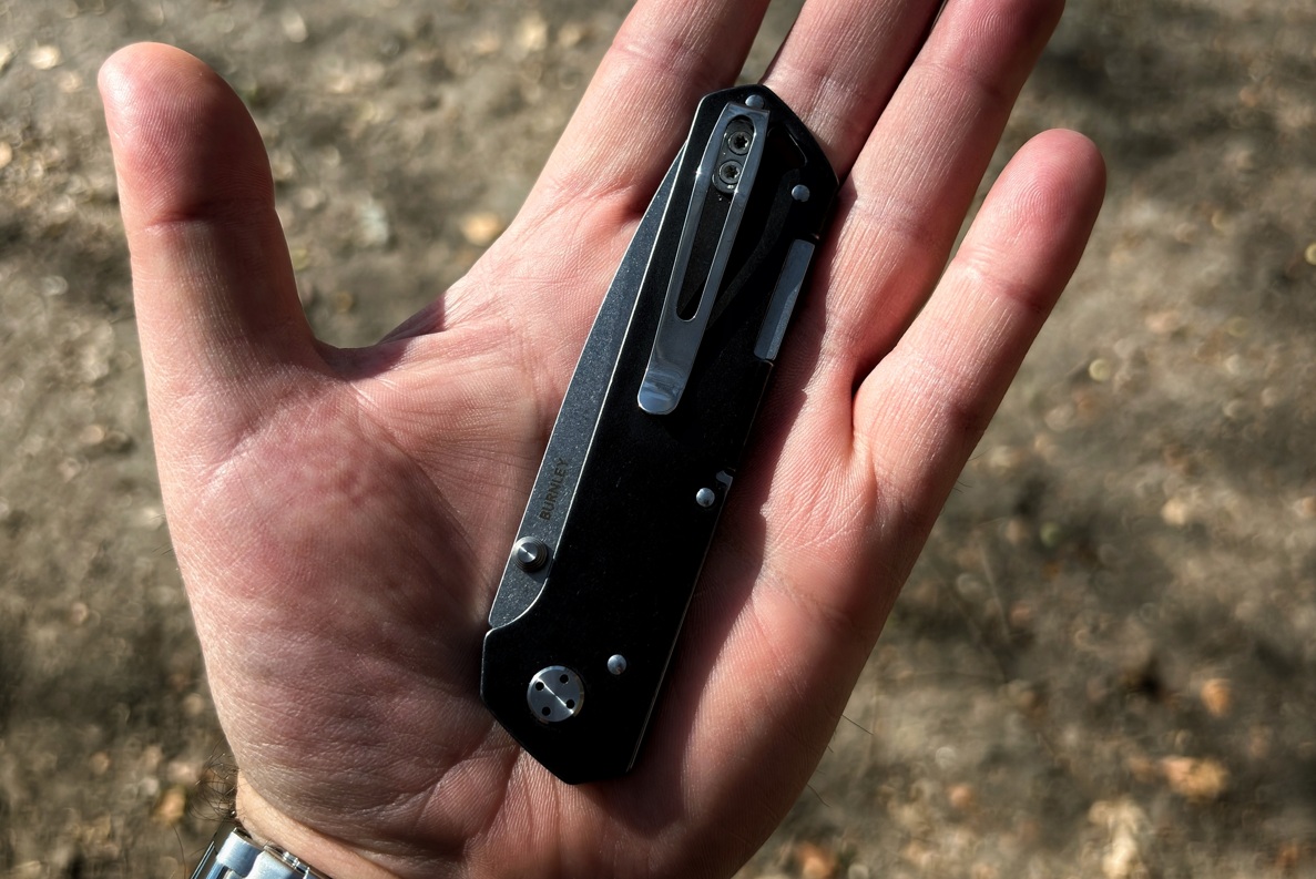 Podczas noszenia w kieszeni nie odczuwałem żadnego dyskomfortu – nóż jest płaski, nie wypycha materiału i trzyma się stabilnie dzięki dobrze ustawionemu klipsowi. Nie przemieszcza się ani nie przekręca, co bywa zmorą niektórych modeli. Klips pozwala na pewne mocowanie zarówno do spodni roboczych, jak i do jeansów, a jednocześnie nie jest na tyle agresywny, żeby niszczyć materiał.