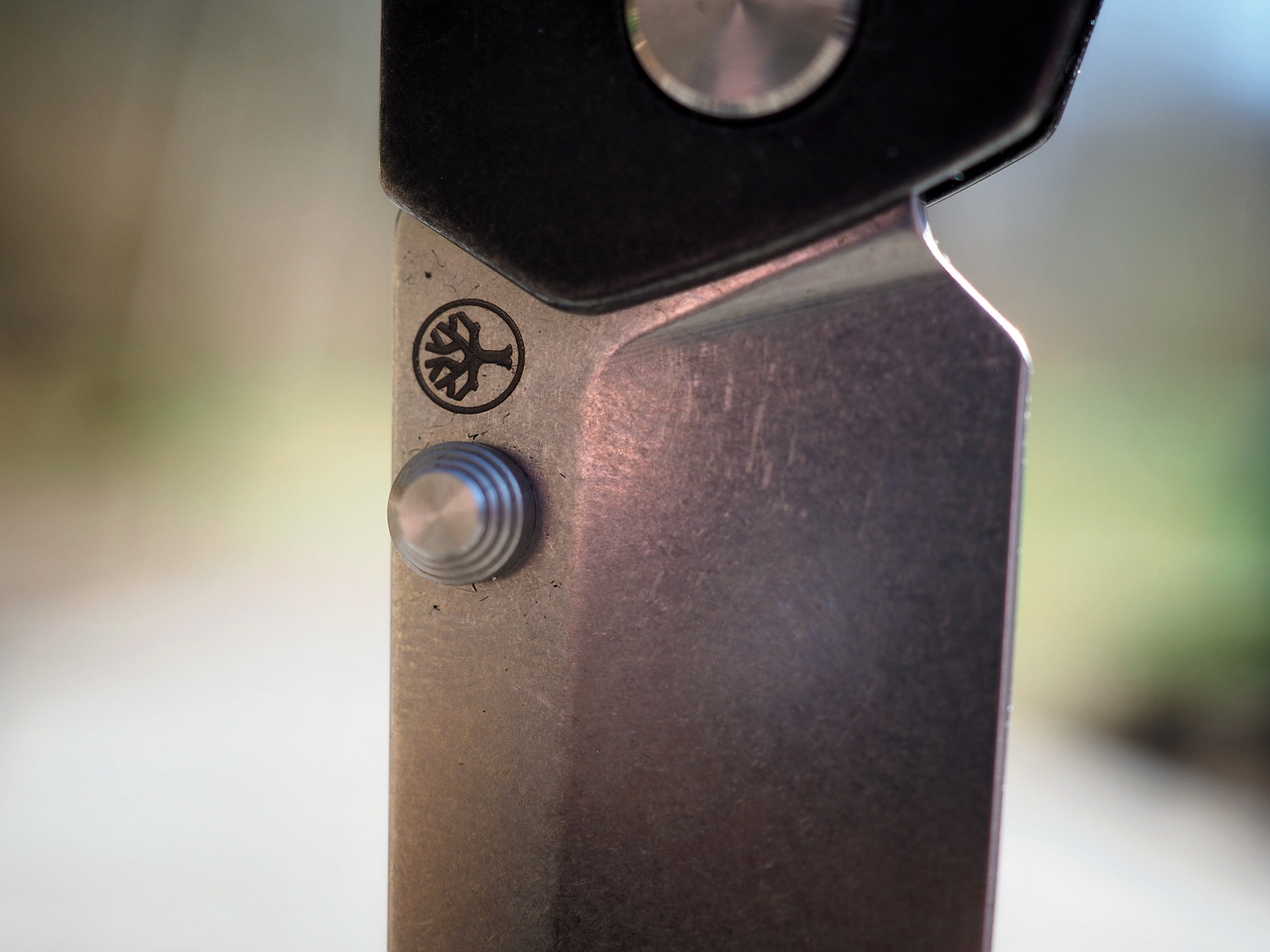 Rękojeść wykonana jest z jednego kawałka stali nierdzewnej i przyjmuje formę tzw. bifold – otwiera się jak klasyczny nóż składany, ale dzięki wyfrezowaniu całego korpusu z jednego kawałka materiału, całość jest sztywna i trwała. Brak oddzielnych okładzin czy linerów to nie tylko oszczędność miejsca, ale również redukcja potencjalnych punktów awarii. Dodatkowo, rękojeść została wykończona w stylu stonewashed lub blackwashed (w zależności od wersji), co dodaje jej charakteru i maskuje ewentualne rysy powstające przy codziennym użytkowaniu.