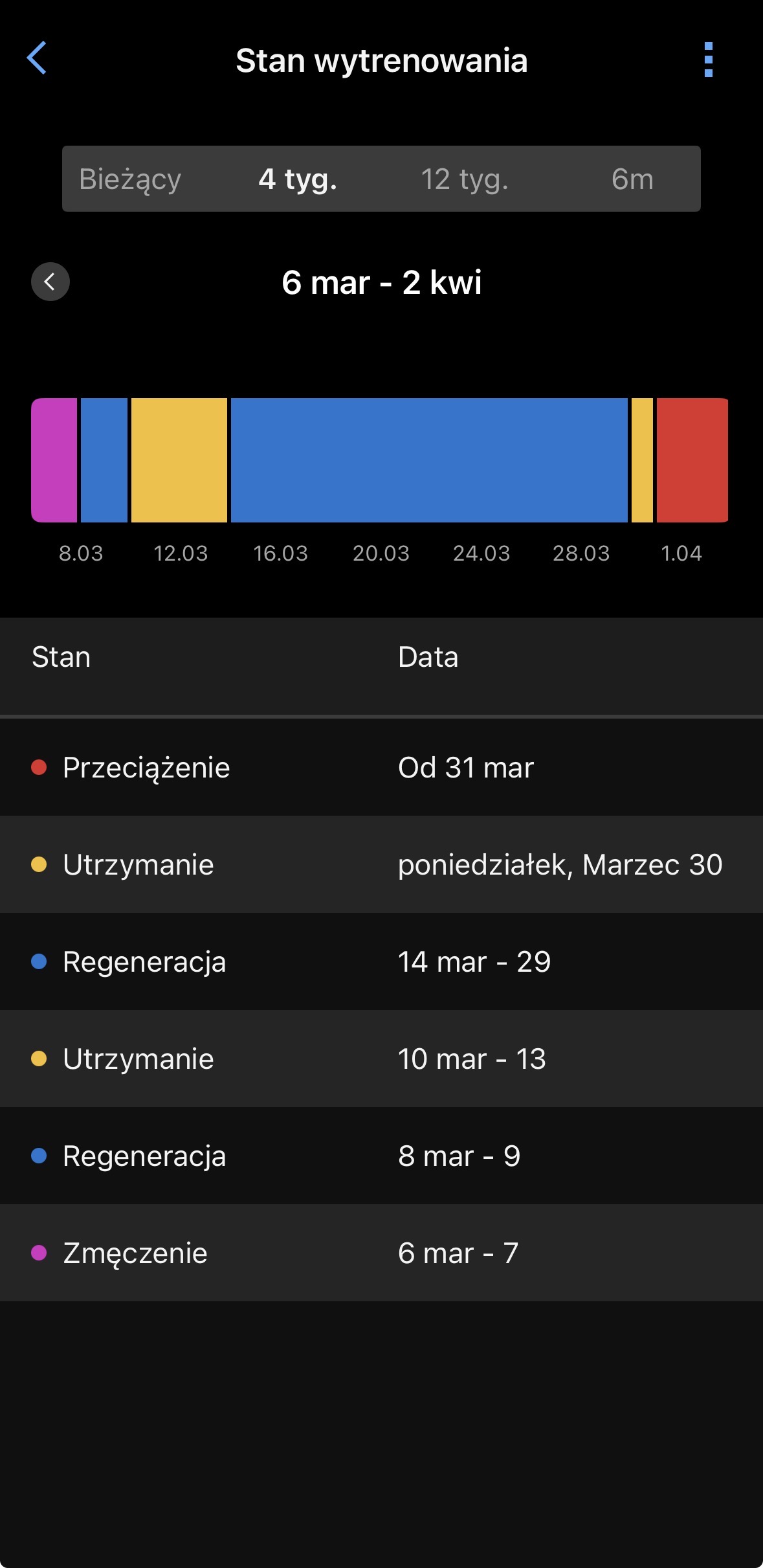Trudno, trzeba wybrać wersję najprostszą – wbiłam w aplikację moje najwyższe zarejestrowane tętno (czyli 169) oraz zaktualizowałam strefy tętna. Najwyżej będę to poprawiać.