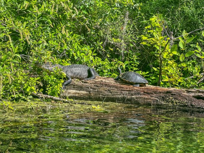 Płynąc wzdłuż rzeki można obserwować ogromne manaty, ryby, ptaki…i krokodyle, które są w zasadzie na wyciągnięcie ręki, ale nie robią sobie nic z obecności człowieka i wygrzewają się w słońcu Florydy na brzegu. Park jest przepiękny, warto będzie tutaj kiedyś wrócić, tymczasem jeśli będziecie mieć okazję być w pobliżu, zachęcam odwiedzić!