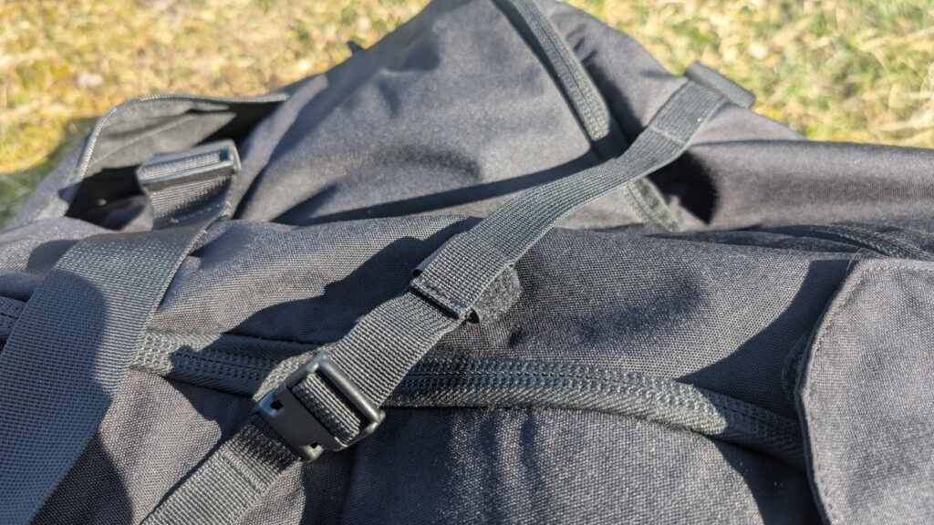Torba jest bardzo pojemna i żeby zapakować ją pod korek, należy wybrać się na wyjątkowo długi wyjazd. W przypadku tych krótszych można posłużyć się dwoma taśmami kompresyjnymi. Działają płynnie, a nadmiar taśmy można zwinąć i zabezpieczyć zintegrowanym zapięciem na rzep. Proste, a działa genialnie.