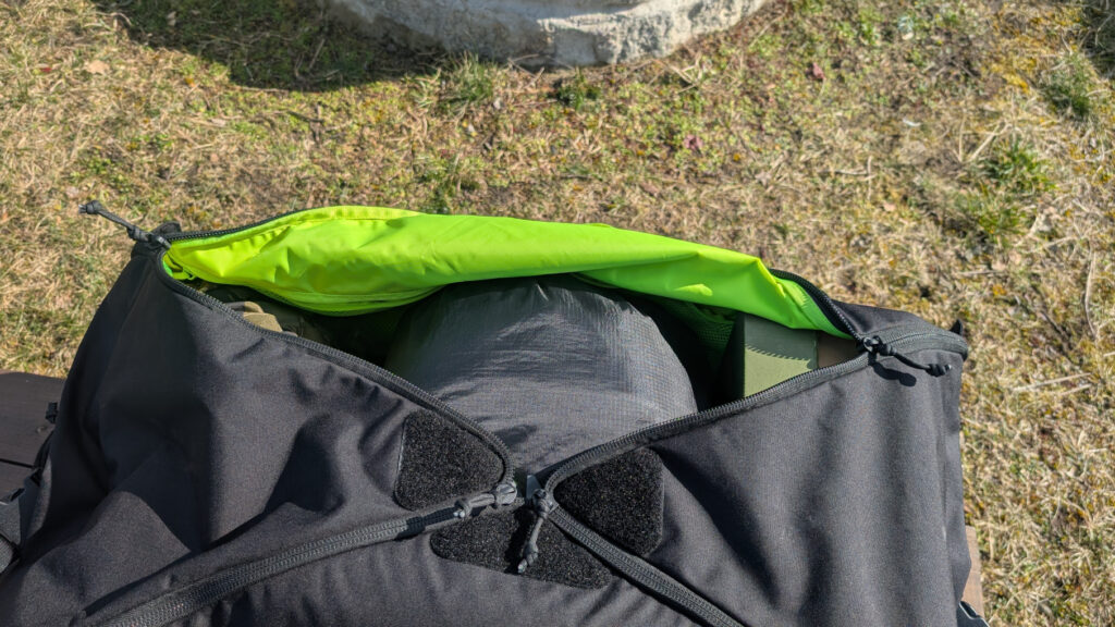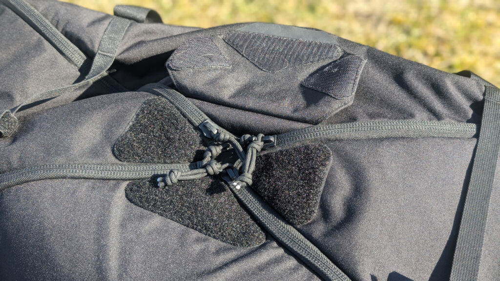 Po zamknięciu, suwaki zamków komory głównej spotykają się w jednym miejscu, które zabezpiecza szeroka patka. Na jej krawędzi umieszczono kawałek sztywniejszego od Cordury materiału, który pomaga w otwarciu.