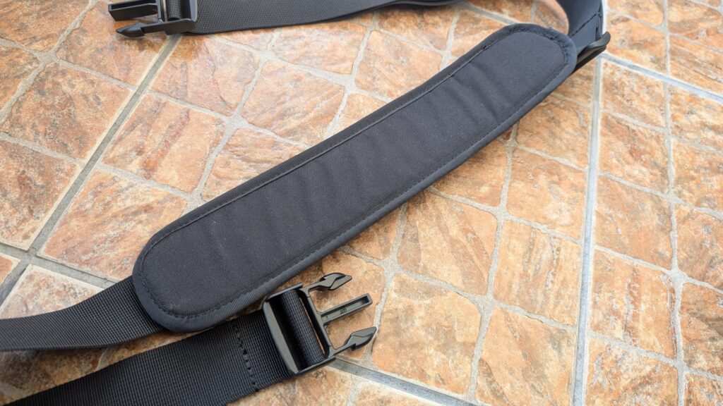 Przejdźmy zatem do samego pasa. Należy mu się spora pochwała. Regulacja działa, jak należy, a nawleczony na niego comfort pad znacząco podnosi komfort przenoszenia. Ale więcej o tym w sekcji poświęconej samemu noszeniu torby.