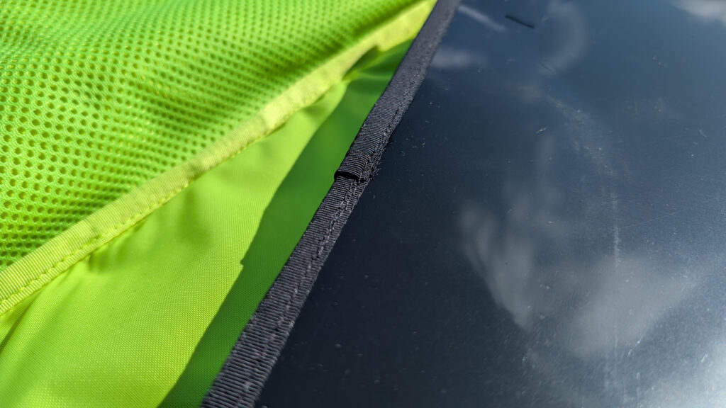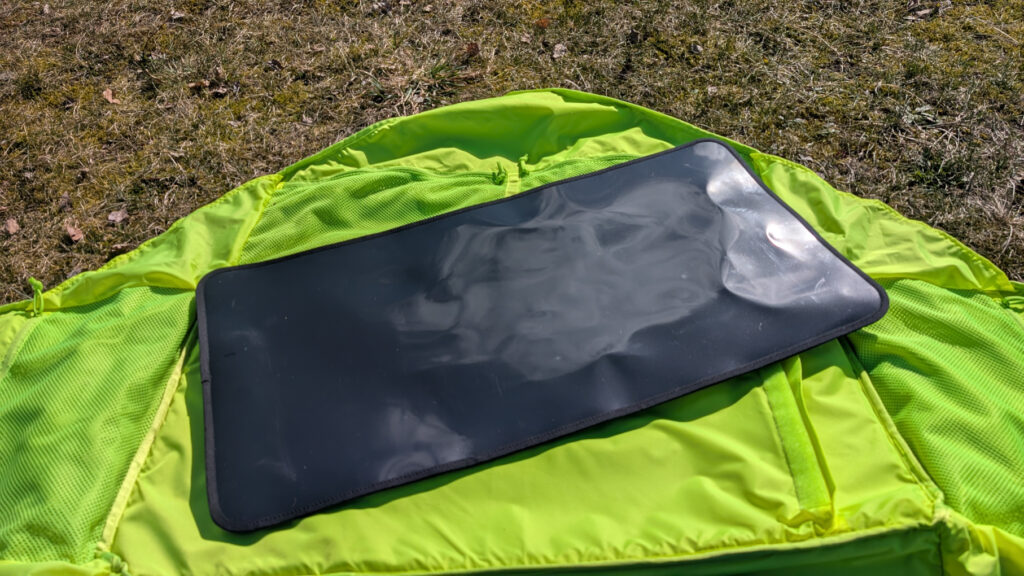 Co istotne, panel od spodniej części pokryty jest jakimś giętkim tworzywem. Jest to bardzo dobre rozwiązanie od Helikona. Nie tylko usztywnia dno, ale również zapewnia większą wodoodporność. Jest to bardzo istotne w trakcie podróżowania zbiorkomem w jesień czy zimę, kiedy to praktycznie każda powierzchnia pokryta jest wodą, solą, błotem, śniegiem i kto wie czym jeszcze. W poprzedniczce dno wykładałem przyciętą na wymiar karimatą, w Alienie — jak widać — nie ma takiej potrzeby.