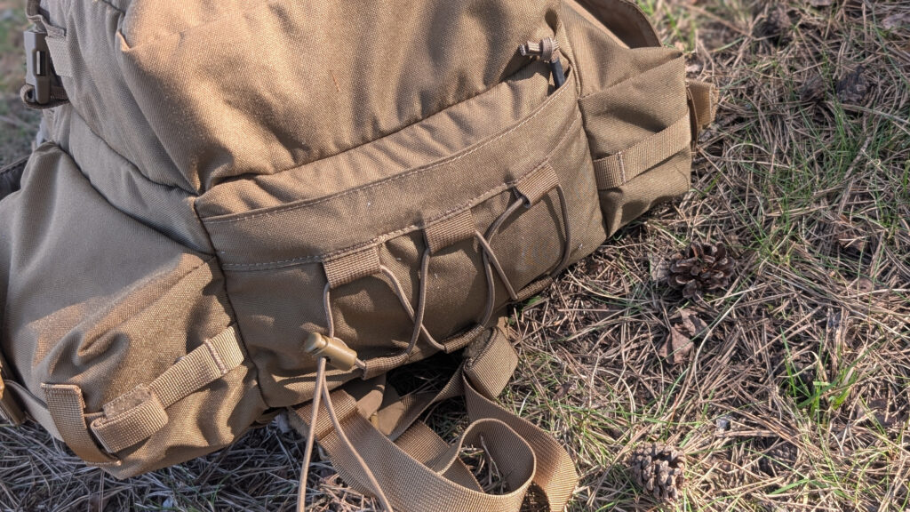 Ambush wydaje się malutkim plecakiem. Wraz z użytkowaniem przekonałem się jednak, że nie jest to do końca prawdą. Można w niego swobodnie spakować się w krótki, kilkugodzinny wypad w teren. Po kieszeniach chowa się cały ekwipunek EDC, w boczne kieszenie wejdzie butelka Nalgene z metalowym kubkiem oraz butla z paliwem do palnika spirytusowego. W komorze głównej zmieści się warstwa ocieplająca oraz liofilizowane danie, zostawiając jeszcze odrobinę miejsca. Mały, ale wariat.