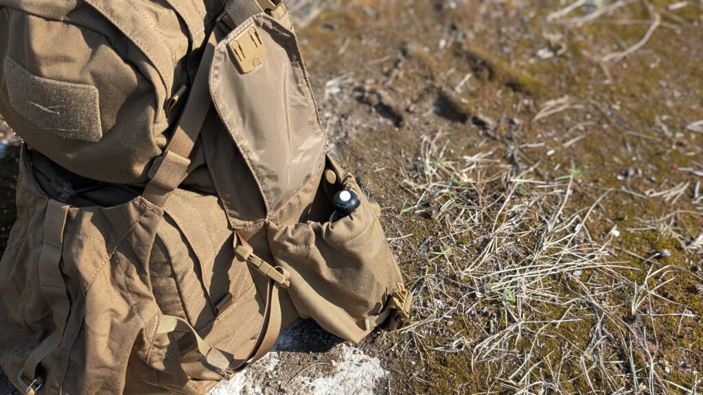 W plecakach tego typu często zdarza się, że boki są w całości zagospodarowane taśmami systemu PALS. W Ambush komórki systemu zredukowano do minimum, a na bokach umieszczono kieszenie ogólnego przeznaczenia. Przypominają ładownice na magazynki i granaty obecne najczęściej na kamizelkach żołnierzy. Zamykane są patką z klamrą o regulowanej taśmie, dzięki czemu zabezpieczyć można w nich różnego rodzaju przedmioty. Pojemność umożliwia umieścić w nich butelkę typu Nalgene w półlitrowym metalowym kubku. Obwód kieszeni zredukować można ściągaczem.