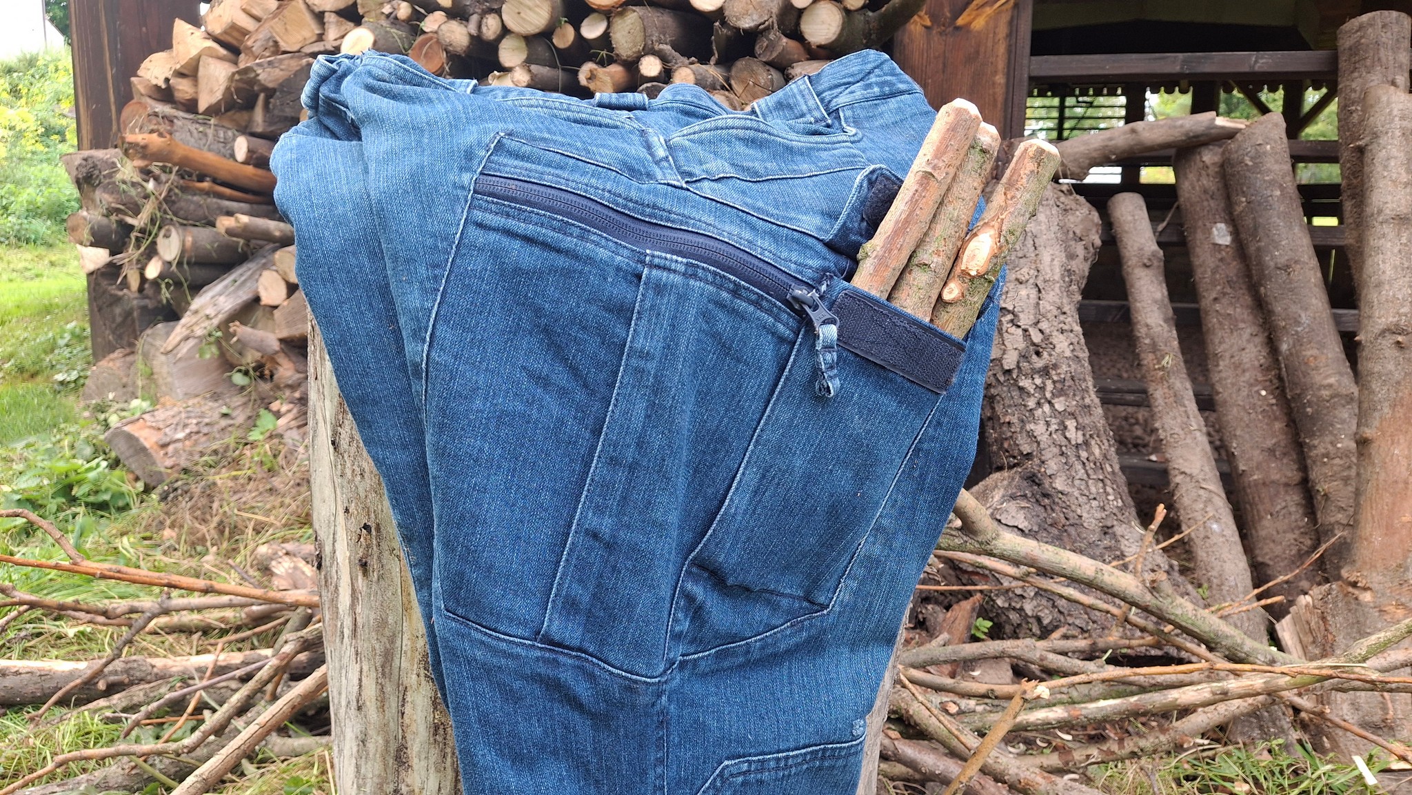 Ponad wszystkie uwielbiam duże kieszenie udowe, zapinane na zamek. Coś jakby „cargo” w bojówkach, ale bardziej estetyczne. Zmieści się czapka, rękawiczki, złożona piła, zapasowy nóż, kłąb sznurka, uzbierana po drodze rozpałka, złożona mapa, kanapka, latarka, mała apteczka… No dobra, może nie to wszystko na raz, ale chyba rozumiecie o co chodzi? Po prostu pojemne i co ważniejsze wygodne kieszenie, do których można upchnąć kopę przydatnych drobiazgów. Czy za kieszenie należy uznać też przestrzenie na ochraniacze na kolana? Jeśli tak, to proszę, poinformowałem o nich.