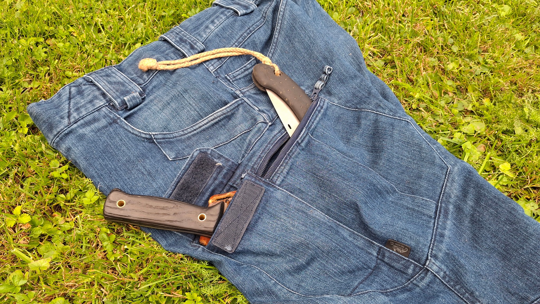 To właśnie ten moment, kiedy użyłem czegoś „niezgodnie z przeznaczeniem”. Projektanci nabiedzili się nad kieszeniami odpowiedniej wielkości na magazynki, a ja noszę w nich zaostrzone patyki. Albo śledzie od hamaka. Przepraszam, ale nie przepraszam. Drodzy projektanci, potraktujcie to jako komplement. Wasze dzieło ma wiele zastosowań.