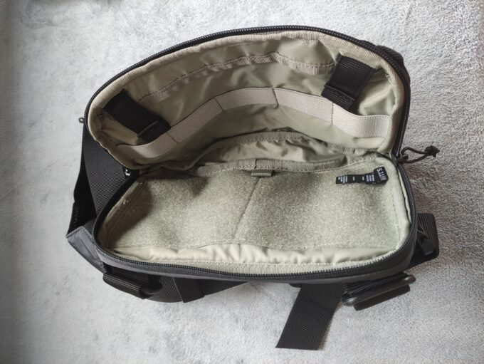 Wnętrze komory w mniejszym modelu jest tożsame z tylną kieszenią w jej większym bracie. Ściana od strony użytkownika w całości pokryta jest rzepem, aby można było indywidualnie dopasować jej ułożenie. Po drugiej stronie znajduje się taśma gumowa, której przeszycia pozwalają na organizacje drobnych rzeczy. Komora ta z powodzeniem pomieści pistolet wraz z magazynkami, a w celu szybkiego dobycia broni w górnej części w obu narożnikach znajdują się taśmy, które służą szybkiemu otwarciu kieszeni.