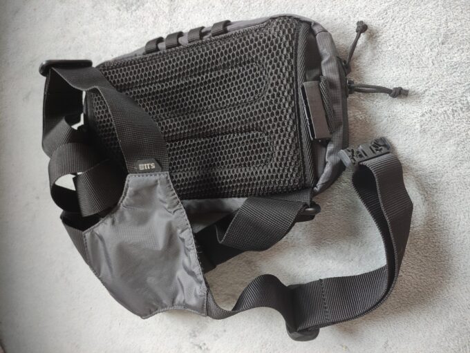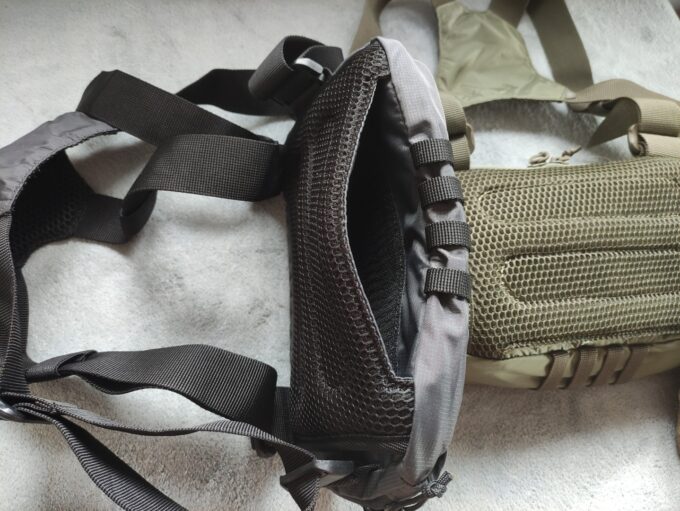 Na dnie od zewnątrz znajdują się naszyte cienkie taśmy pozwalające zamontować dodatkowe wyposażenie, np. opaskę uciskową. Na tylnej ścianie panelu oraz łącznika na plecach znajduje się dość gruba siatka dystansowa, która ma polepszyć wentylację.
