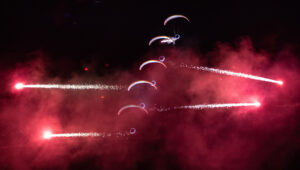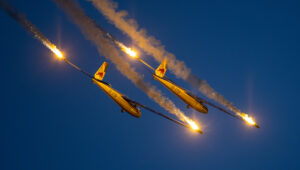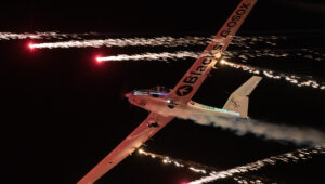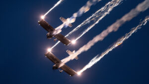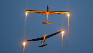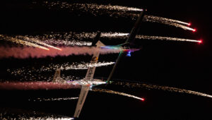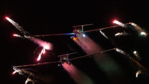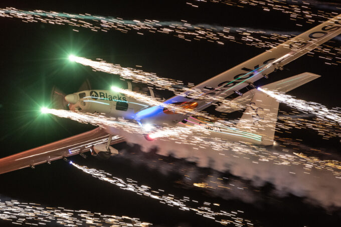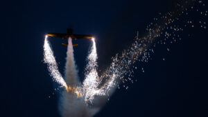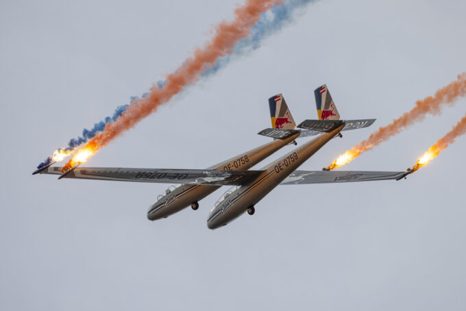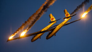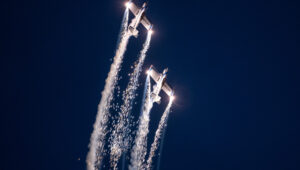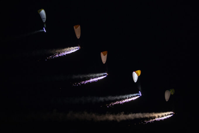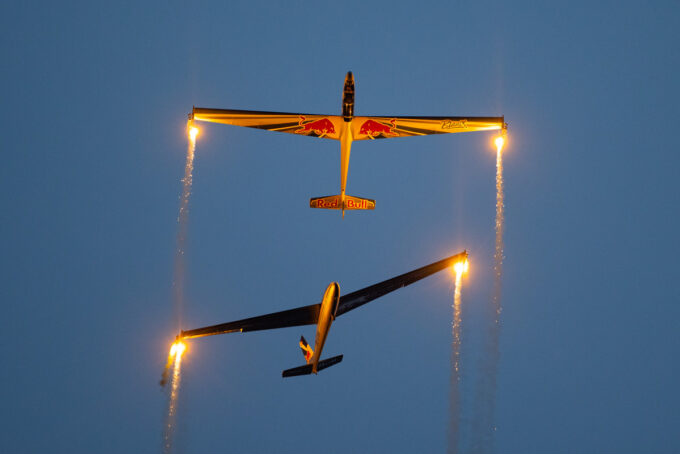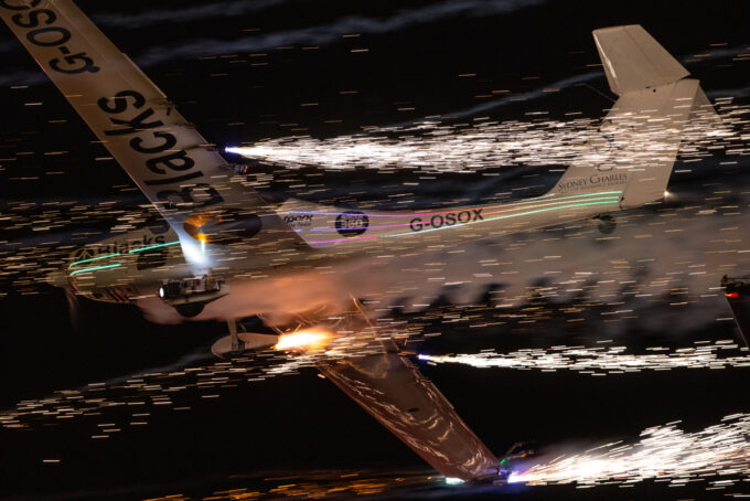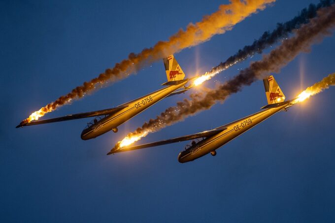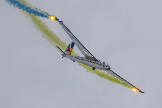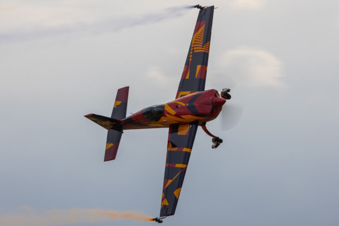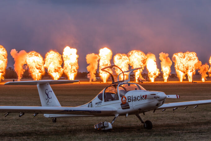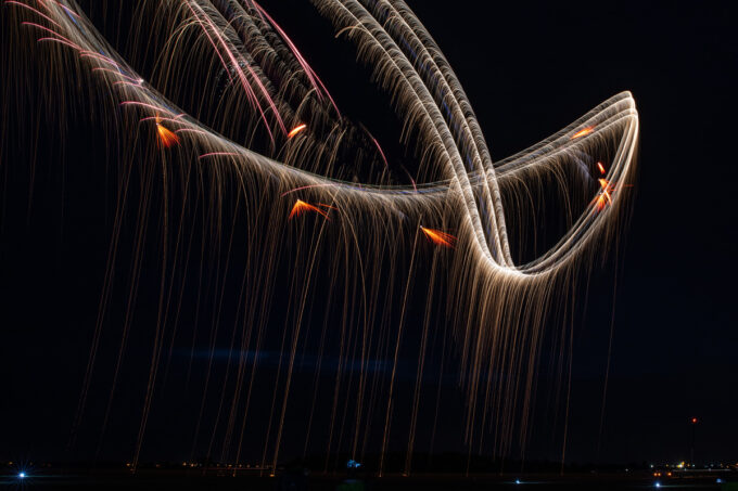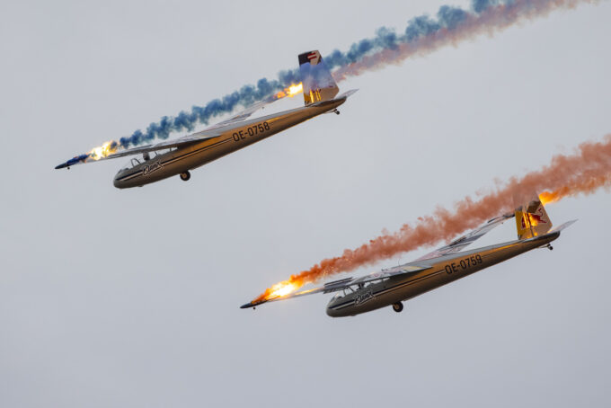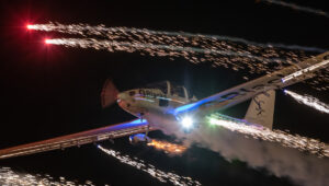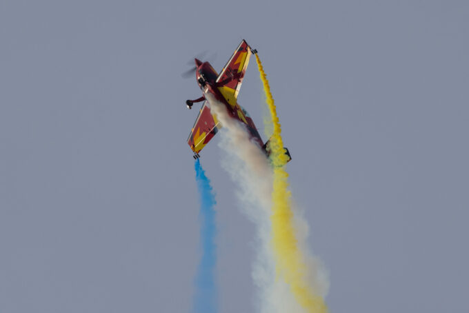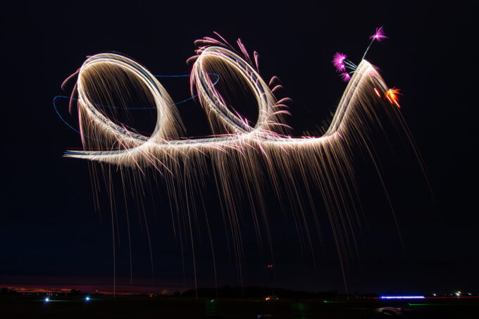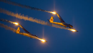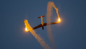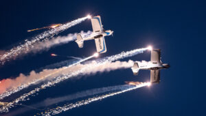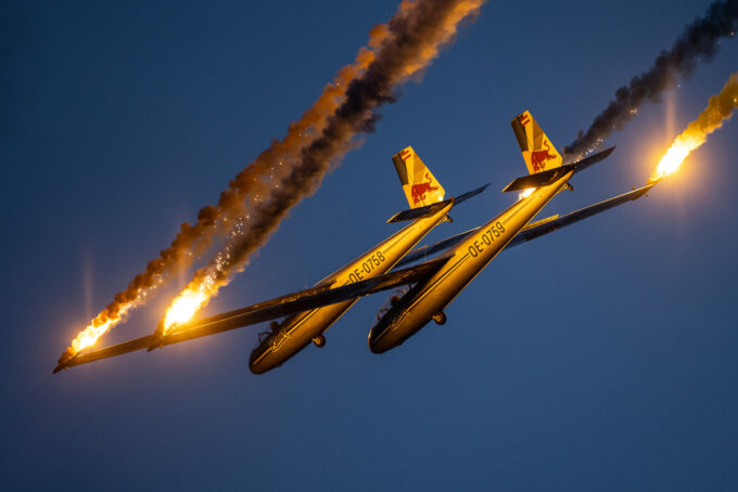 Pokazy lotnicze w Lesznie zaplanowane były na piątek i sobotę. Pogoda zarówno w pierwszy jak i drugi dzień wytrzymała do samego końca, a tuż po ostatnim pokazie w oba dni się rozpadało. Same pokazy, to poprzeczka ustawiona przez organizatorów bardzo wysoko. Oglądanie akrobacji lotniczej po zachodzie słońca, to jedna z najprzyjemniejszych rzeczy jaką widziałem na pokazach. A gdy dochodzi do tego jeszcze pirotechnika – widok ładniejszy niż niejeden pokaz fajerwerków.