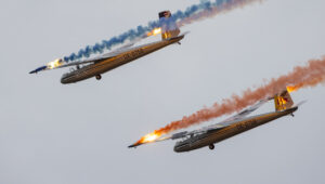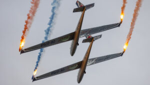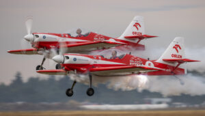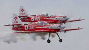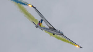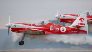 Pokazy grupy Aerosparx to majstersztyk. Miałem przyjemność oglądać ich wielokrotnie i za każdym razem ręce same składają się do braw. W Lesznie, po raz pierwszy oglądałem ich pokaz z muzyką wykonywaną na żywo. Duże wrażenie zrobiła też na mnie grupa Flying Dragons, którą pierwszy raz oglądałem lata temu w Nowym Targu. To co pokazali w Lesznie, to również pierwsza liga!