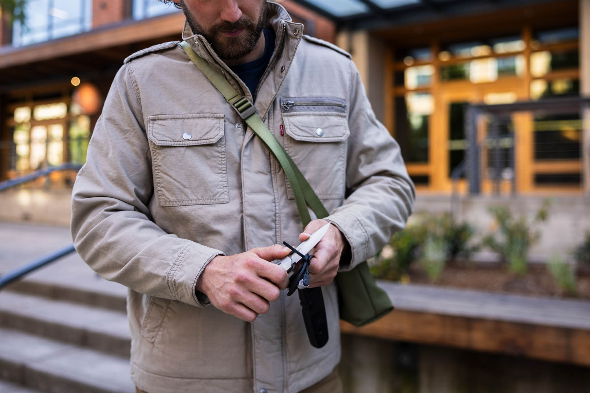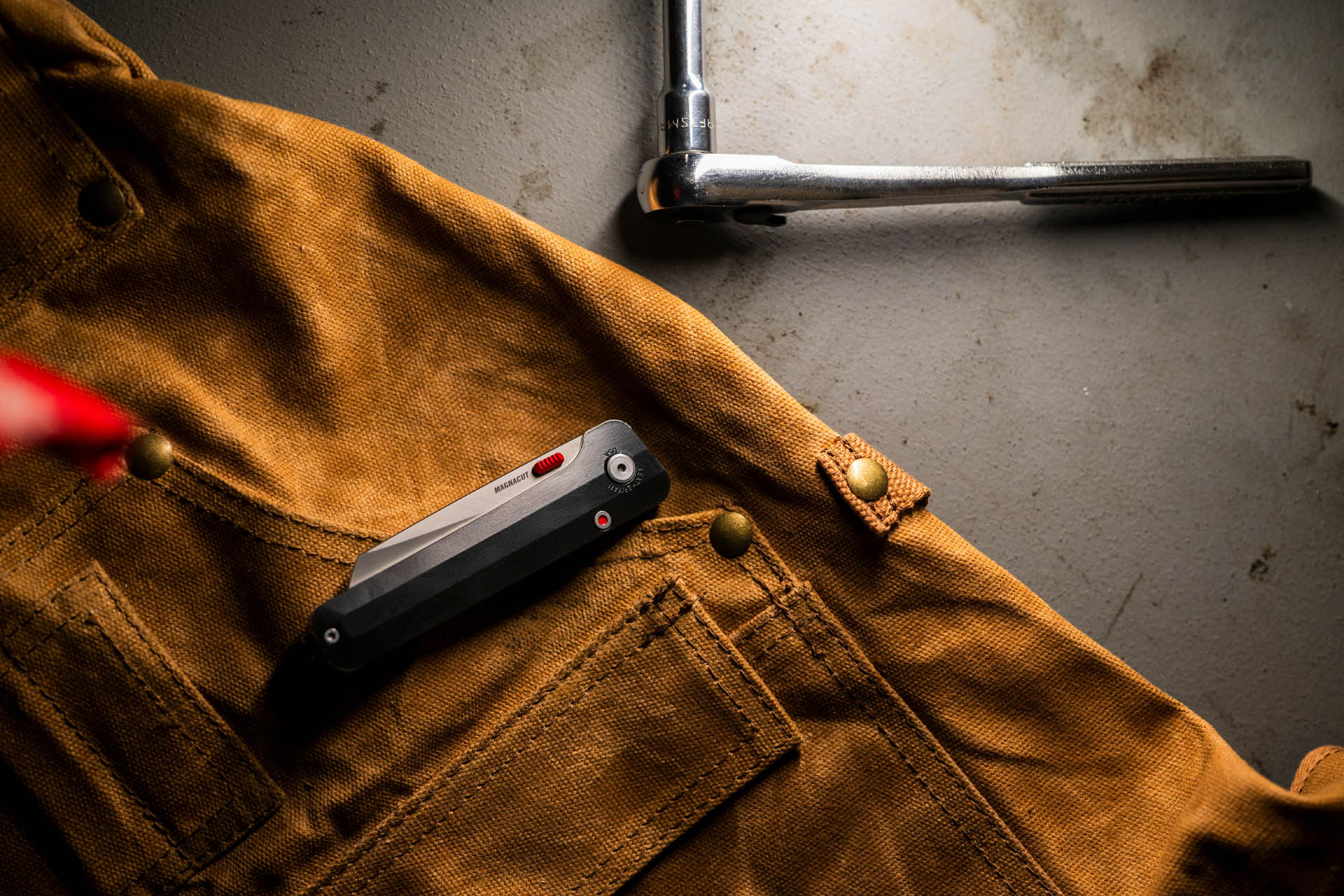 Bezpieczeństwo i łatwość obsługi zapewnia blokada aktywowana przyciskiem (w trakcie opatentowania), która jest solidna i niezawodna. W zestawie z każdym nożem znajduje się smyczka z koralikiem oraz unikalne mocowanie na bity. Dołączone są również dwustronne bity Torx #8 (do śruby klipsa) i Torx #6 (do śruby kołka pod kciuk). Oba modele są dostępne w dwóch kolorach, z powłoką Cerakote (w Blazerze tylko w wersji Denim), co zwiększa ich trwałość.