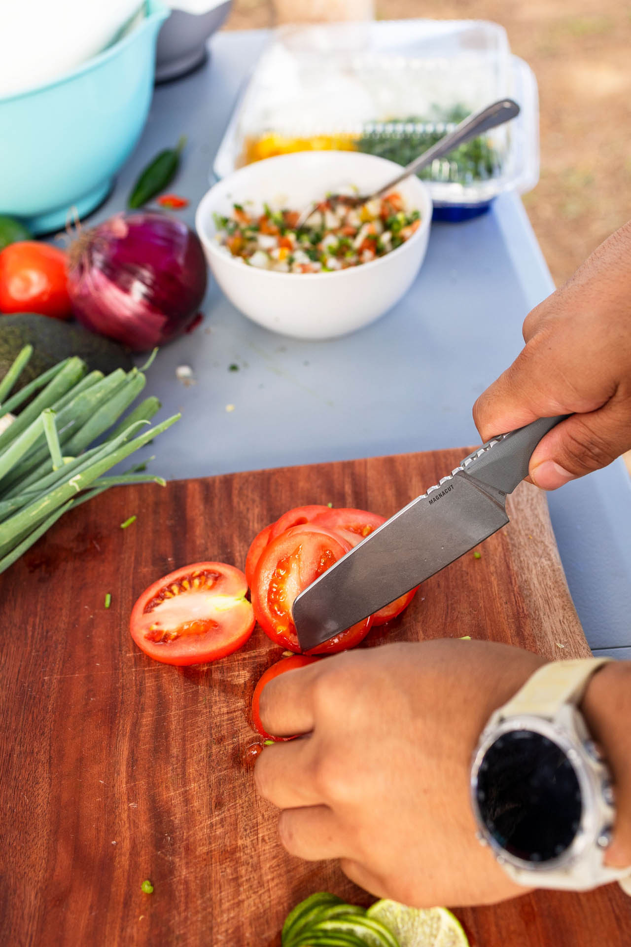Rustle to nóż ze stałym ostrzem stworzony dla miłośników gotowania na łonie natury. Ten praktyczny element wyposażenia każdego nowoczesnego biwakowicza gwarantuje wygodę i wszechstronność w kuchni polowej. Dzięki niemu z łatwością przygotujesz składniki na każdą ogniskową ucztę. Uniwersalna konstrukcja i ergonomiczna rękojeść sprawiają, że Leatherman Rustle sprawdzi się przy wszystkich kulinarnych wyzwaniach na kempingu – niezależnie od tego, czy potrzebujesz go do gotowania warzywnych gulaszy, filetowania ryb, czy precyzyjnego krojenia mięsa.