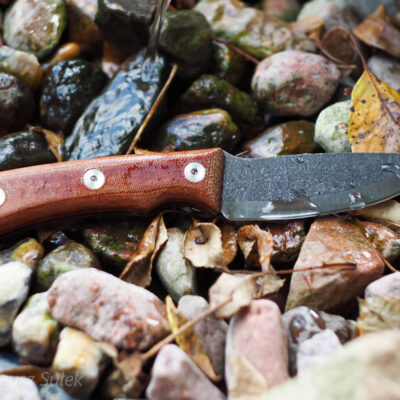 Duże noże są fajne, bo są fajne i duże. Bułkę przetniesz, drzewko zrąbiesz, szałas szybko zbudujesz. Ale wiecie co? Nie są podręczne. A kiedy jest się w terenie, naprawdę przydaje się nóż, po który można błyskawicznie sięgnąć, wykonać jedną małą czynność i od razu go schować. I dobrze by było, gdyby to nie był składaniec, którego mechanizm może się zepsuć albo głownia wyłamać. Dlatego właśnie jakiś geniusz wymyślił noże typu neck, czyli maluchy ze stałym ostrzem. Do tego typu należy Mora Eldris. Jest to nożyk wybitnie kompaktowy, o którym od razu muszę powiedzieć – bo obiecałem – że pokochała go moja Żona. „Gdzie jest moja mała Morka?” słyszę zawsze, kiedy zbieramy się razem na jakiś wyjazd. I nie dziwi mnie to ani trochę. Eldris to nożyk, który ujął mnie za serce. Jego ostrze ma 59 mm długości, czyli mniej więcej tyle, ile liczy fundament głowni mojego noża podstawowego. Fundament głowni, czyli ta część ostrza, która w języku staropolskim była określana mianem „silny”. Dokładnie ta, którą najczęściej się pracuje.
