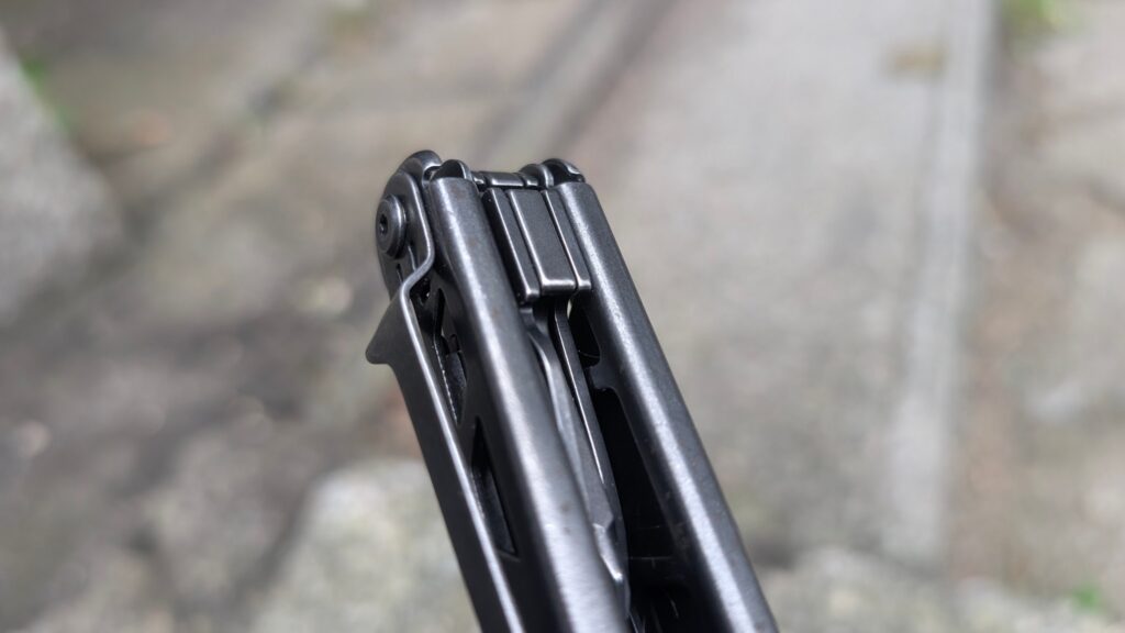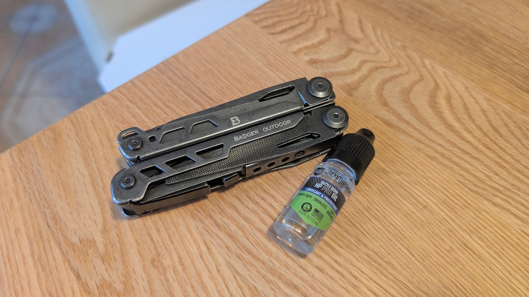 Nie odnotowałem także luzów, które oznaczałyby nagłe otwarcie czy wysunięcie się narzędzia. Operując pierwszy raz narzędziami, w szczególności tymi otwieranymi jednorącz, czuć było jednocześnie opór i dość „suchą” pracę. Co mnie zmartwiło to fakt, że wyjątkowo ciężko otwierał się nóż, przy czym pozostałe narzędzia chodziły zdecydowanie luźniej. Aby łatwiej było całość rozruszać, w kluczowych miejscach zaaplikowałem smar Breakthrough HP Pro Oil, który otrzymałem na Enforce Tac. Całkiem nieźle sprawdza cię w takim zastosowaniu.