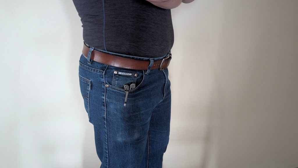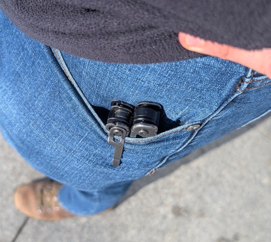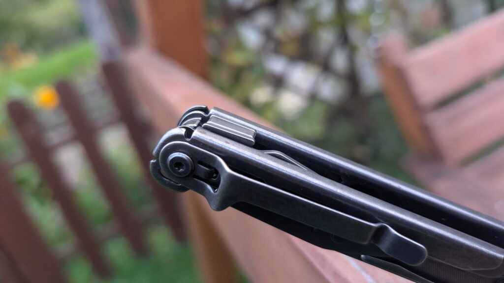 Klips jako tako działa, ale czy jest taki mocny, to ciężko rzec. Co prawda jakoś tam trzyma, ale jednak jest to kawał narzędzia i przy specyficznym ułożeniu – np. przy siadaniu czy kucaniu – obawiałbym się o jego wysunięcie. Ze strony projektantów nie rozumiem też zamocowania klipsa na krótszym ramieniu, przez co to dłuższe dość wysoko wystaje poza kieszeń. Z jednej strony niby łatwiej go chwycić, z drugiej bardziej rzuca się w oczy.