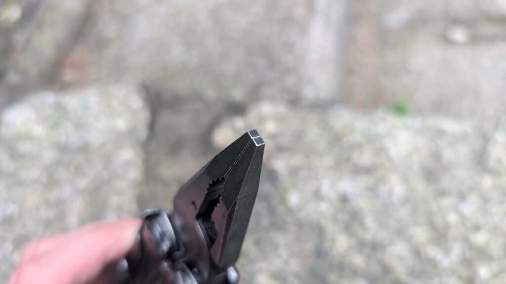 Wraz z nimi zawarto wymienne przecinaki do drutu. Na stronie Militaria.pl znalazłem zestaw zapasowych przecinaków, ale nie uwzględniono w opisie, czy nadają się do modelu Boa. Być może się nadają, tylko trzeba uaktualnić opis. Kształtem są w sumie identyczne. Przecinaki postanowiłem przetestować na kilkunastocentymetrowym drucie znalezionym na działce.