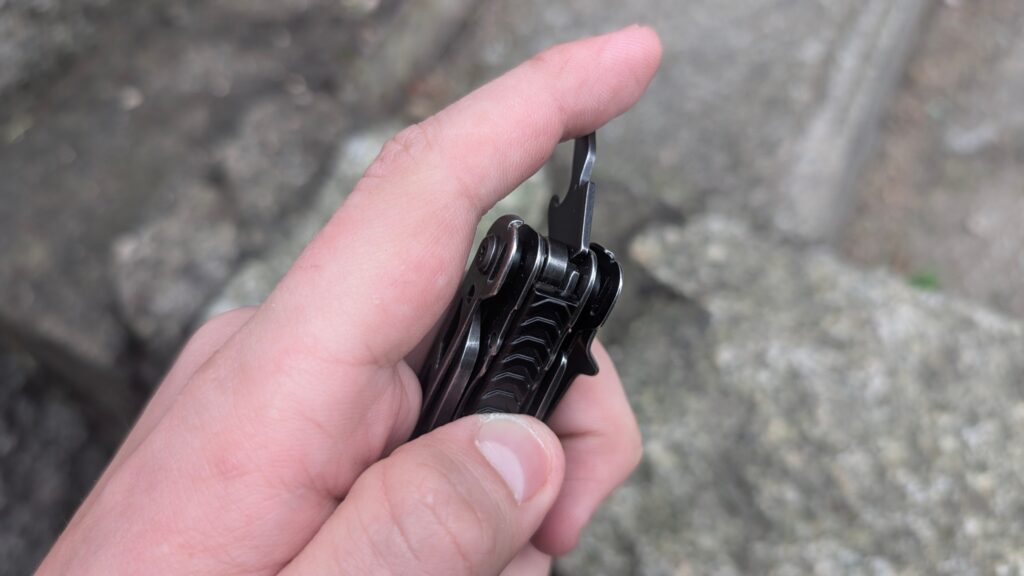 Załóżmy sytuację, że chcemy otworzyć butelkę, podważyć coś płaskim śrubokrętem lub dokręcić wkręt. Prosta, szybka czynność, którą jednak spowalnia potrzeba częściowego rozłożenia multitoola. Niby nic wielkiego, ale nieco irytuje – zwłaszcza, że w innych moich narzędziach (w zasadzie 4 scyzorykach i jednym multitoolu) jest to znacznie szybsze.