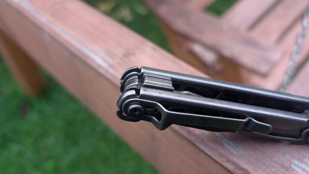 W przypadku multitoola trudniej o coś innego, niż blokada liner-lock. Kontrująca ostrze w pozycji rozłożonej blaszka wyposażona jest dodatkowo w detent, czyli występ – pełniący istotną funkcję. Występ ten powoduje, że przy składaniu noża napotyka on na początku swojej drogi pewny opór. Przy składaniu jednorącz mamy dzięki niemu pewność, że nie złożymy ostrza za szybko i narazimy palce na uraz. W zasadzie standard, ale wciąż miło, że jest.