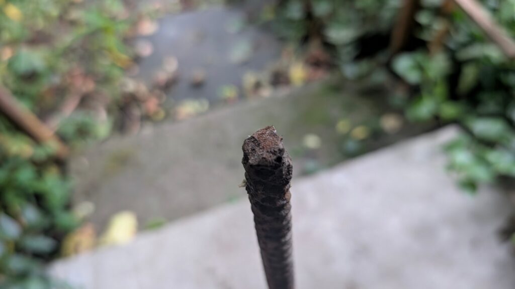 Drut okazał się naprawdę twardy i trzeba było włożyć trochę siły, aby go przeciąć. Samo cięcie realizowałem wewnątrz wiadra, bo drut po przecięciu zamieniał się w pocisk.