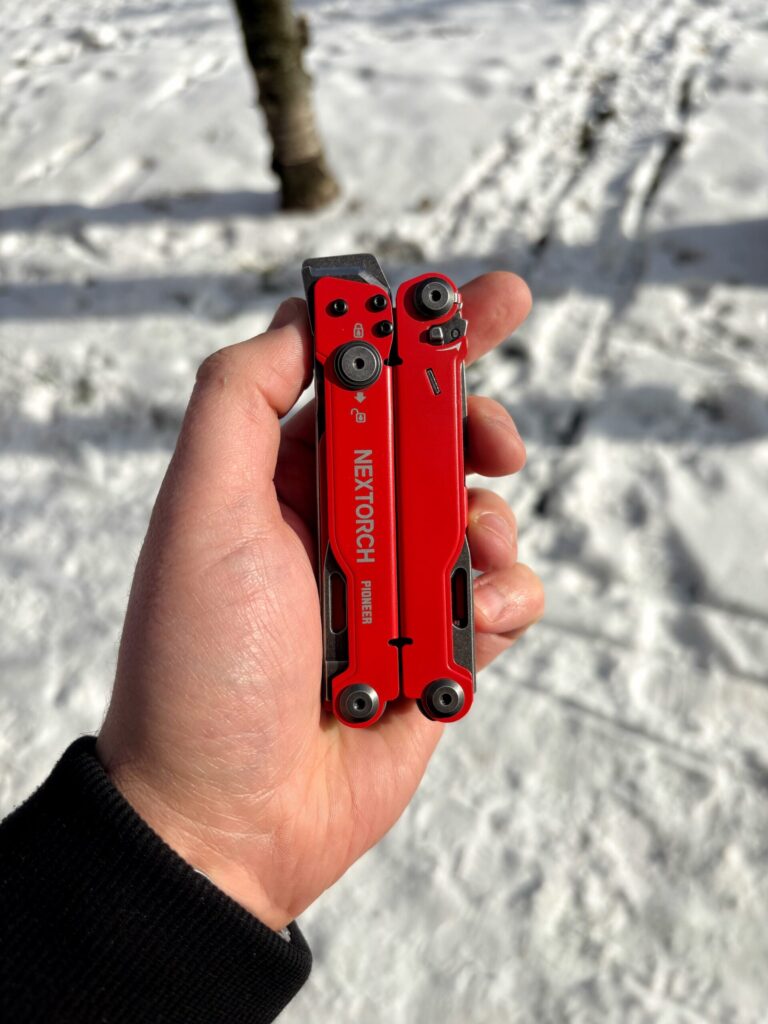 Podczas testowania multitoola Nextorch Pioneer MT20 w czerwonej wersji, od razu zwróciłem uwagę na jego solidną konstrukcję i masę, które sugerują trwałość i gotowość do ciężkiej pracy. Już na pierwszy rzut oka narzędzie sprawia wrażenie dobrze zaprojektowanego – ergonomia, użyte materiały i mechanizmy blokujące budzą zaufanie. Masa multitoola (268 gramów) jest odpowiednia – czuć go w dłoni, ale nie sprawia wrażenia topornego.