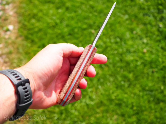 Drugim minusem jest długość ostrego. Wiem, że to kwestia projektu i tekstów, ale z chęcią poużywałbym tego noża w wersji large, tak z 4-5 cm dłuższej.