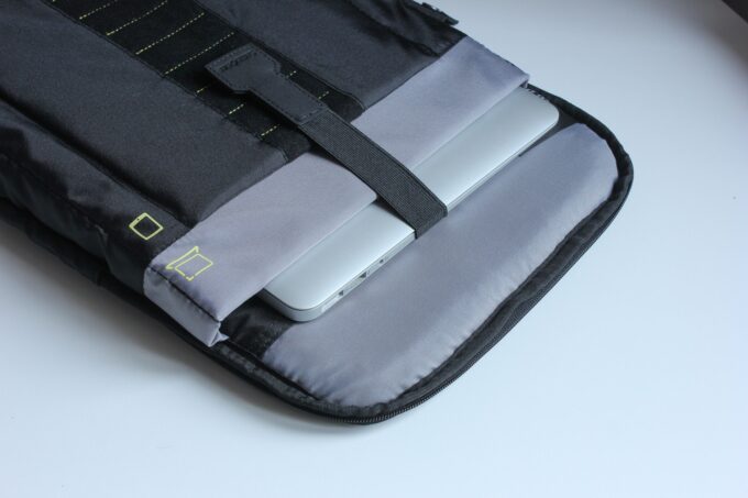Nawet jeśli jakimś cudem przecięcie dna plecaka by się powiodło, wbudowany organizer jest dodatkowym zabezpieczeniem zawartości. Osobiście uważam, że w przypadku omawianego modelu został on wykonany wzorcowo. Przedziały na laptopa i tablet są zabezpieczone elastyczną taśmą uniemożliwiają wypadnięcie sprzętu przez dno. Ponadto mimo dosyć złożonej konstrukcji organizery na obu stronach plecaka niemal zupełnie nie wpływają na jego pakowność. Oczywiście po wypełnieniu zapewne zabiorą nieco miejsca z 17 litrów komory, jednakże muszę przyznać, że są naprawdę dobrze przemyślane, a gdy pozostają puste, dobrze składają się z wewnętrzną powierzchnią.