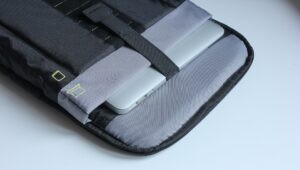 Nawet jeśli jakimś cudem przecięcie dna plecaka by się powiodło, wbudowany organizer jest dodatkowym zabezpieczeniem zawartości. Osobiście uważam, że w przypadku omawianego modelu został on wykonany wzorcowo. Przedziały na laptopa i tablet są zabezpieczone elastyczną taśmą uniemożliwiają wypadnięcie sprzętu przez dno. Ponadto mimo dosyć złożonej konstrukcji organizery na obu stronach plecaka niemal zupełnie nie wpływają na jego pakowność. Oczywiście po wypełnieniu zapewne zabiorą nieco miejsca z 17 litrów komory, jednakże muszę przyznać, że są naprawdę dobrze przemyślane, a gdy pozostają puste, dobrze składają się z wewnętrzną powierzchnią.