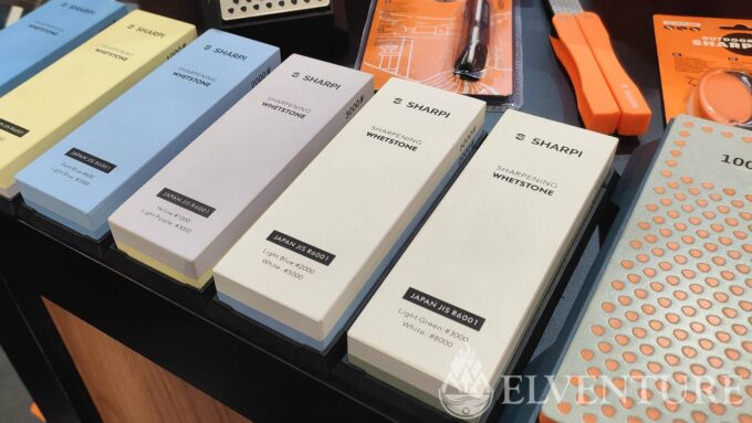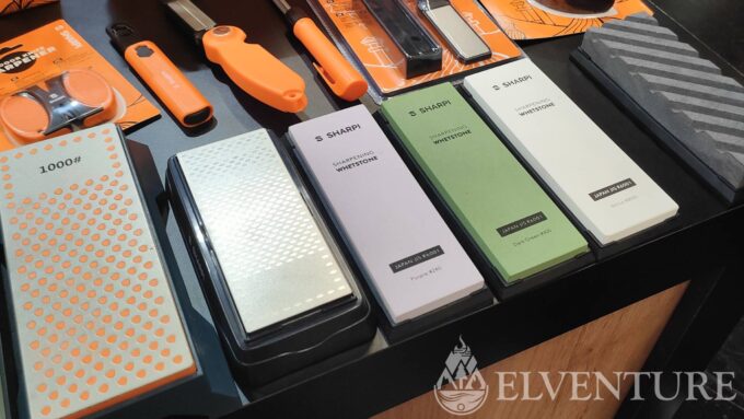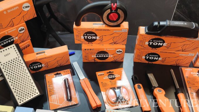 Na stoisku swoje miejsce miał także współpracownik Daniela – Sebastian, czyli właściciel marki Sharpi. Zaprezentował dość obszerne portfolio przyrządów służących do ostrzenia. I trzeba przyznać, że ludzka inwencja w tej materii jest dość płodna. Ilość ostrzałek zadziwiała, choć trzeba to szczerze powiedzieć – niektóre nie rokowały zbyt dobrze. Ale nie brakowało też klasyki w postaci kamieni wodnych, a także ciekawostek jak np. zaoblone płytki ceramiczne do ostrzenia nożyków do szczepienia roślin. Mocno wyspecjalizowane, nie ma co.