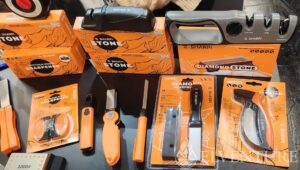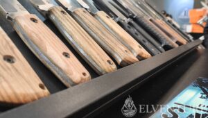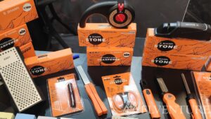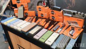Na stoisku swoje miejsce miał także współpracownik Daniela – Sebastian, czyli właściciel marki Sharpi. Zaprezentował dość obszerne portfolio przyrządów służących do ostrzenia. I trzeba przyznać, że ludzka inwencja w tej materii jest dość płodna. Ilość ostrzałek zadziwiała, choć trzeba to szczerze powiedzieć – niektóre nie rokowały zbyt dobrze. Ale nie brakowało też klasyki w postaci kamieni wodnych, a także ciekawostek jak np. zaoblone płytki ceramiczne do ostrzenia nożyków do szczepienia roślin. Mocno wyspecjalizowane, nie ma co.