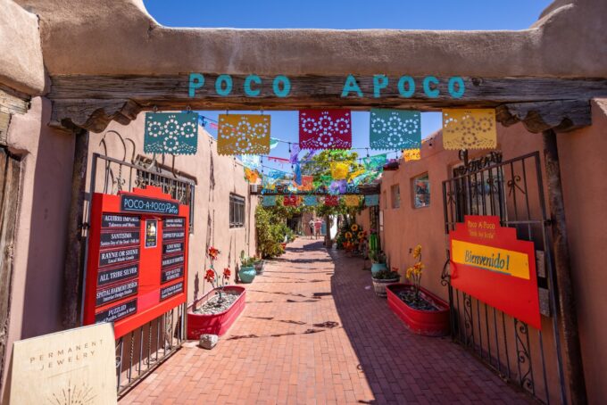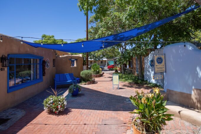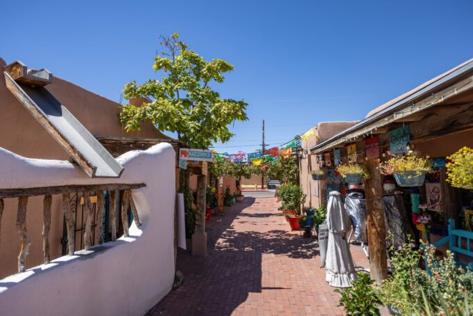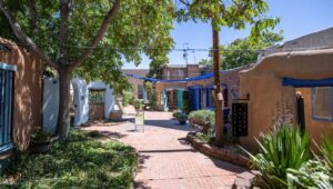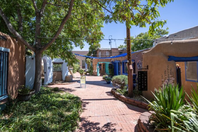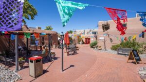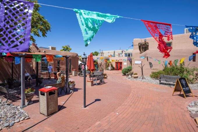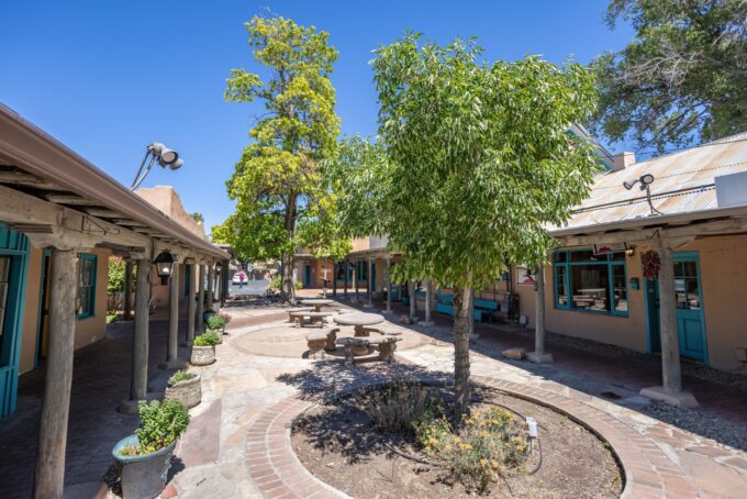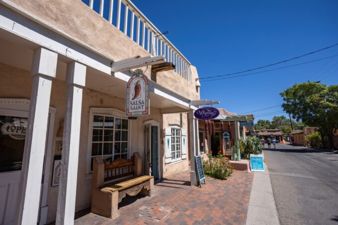 Przez Old Town Plaza przebiegała kiedyś Królewska Droga Krajów Wewnętrznych, która łączyła Mexico City ze stolicą Nowego Meksyku San Gabriel, a później Santa Fe. El Camino Real jest obecnie narodowym szlakiem historycznym wyznaczonym przez rząd USA.