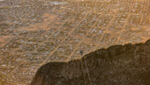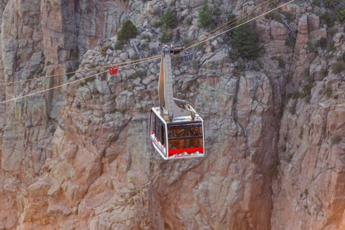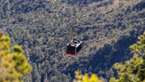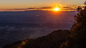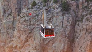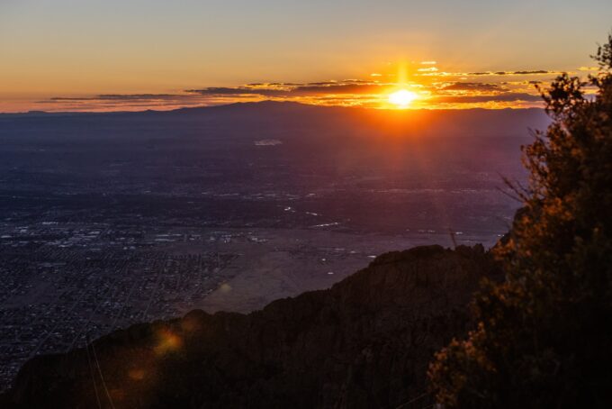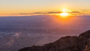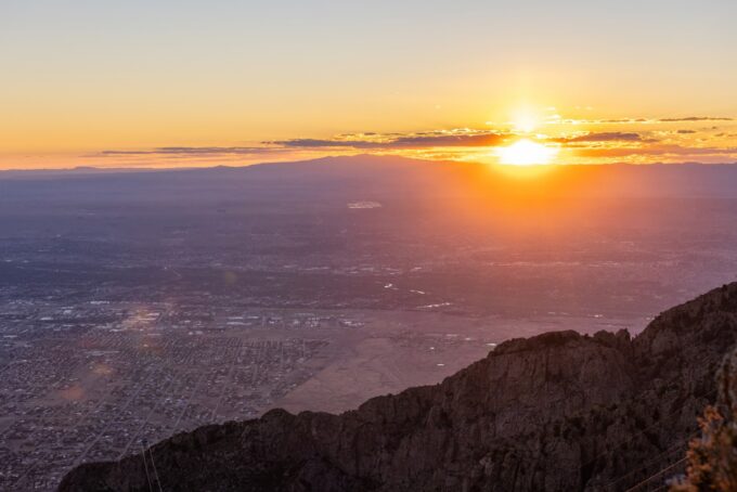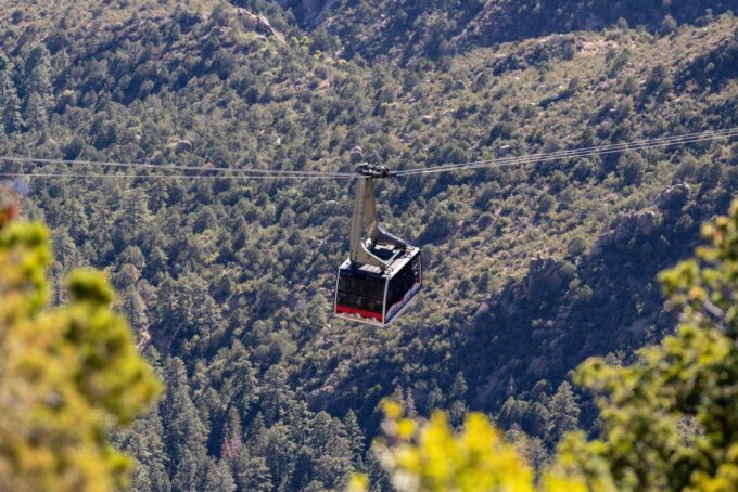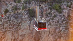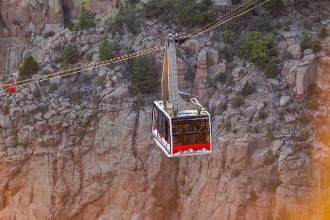 Po zwiedzeniu Old Town Plaza pojechaliśmy na obiad, a później czekała nas jeszcze jedna przygoda. Jako, że Albuquerque leży u podnóża pasma górskiego Sandia Mountains, postanowiliśmy wyjechać kolejką na samą górę, aby zobaczyć zachód słońca. Aby wyjechać na szczyt, trzeba kupić bilet na konkretną godzinę (34$ od osoby). Jako że było po sezonie, a dotarliśmy na dolną stację trochę wcześniej, mogliśmy pojechać na szczyt, kiedy tylko chcieliśmy.
