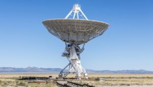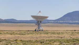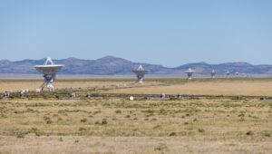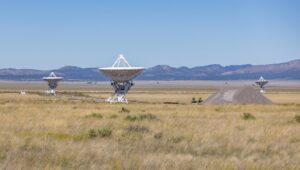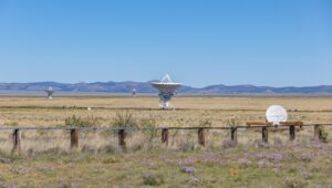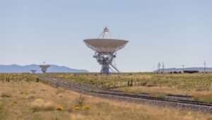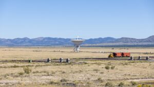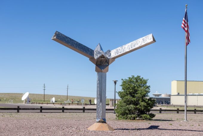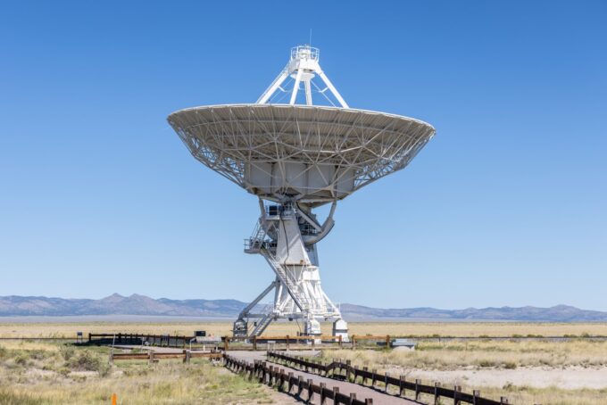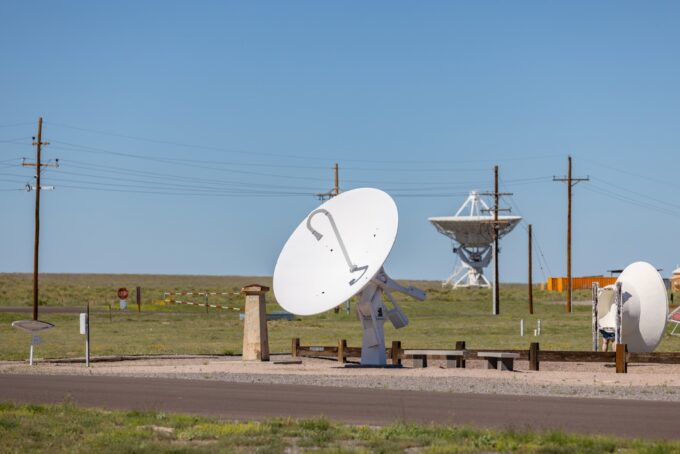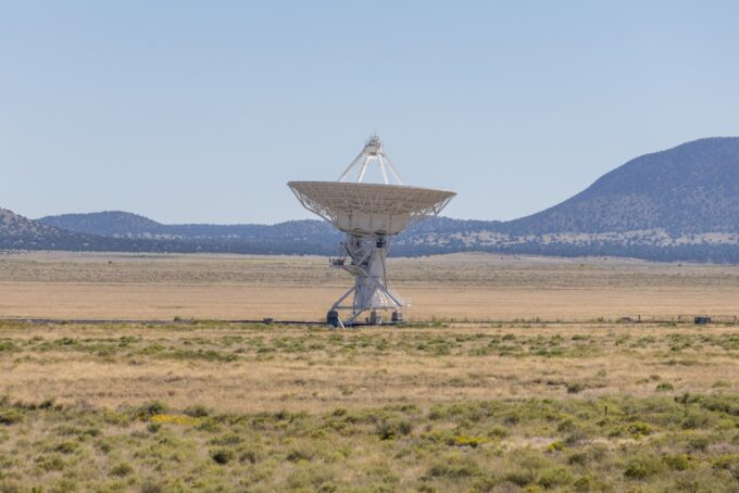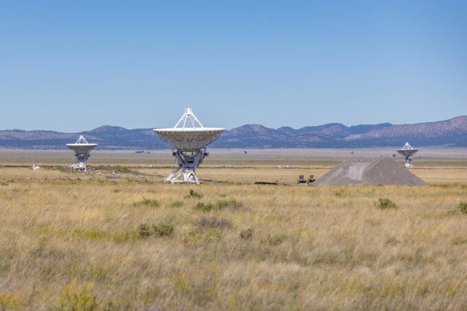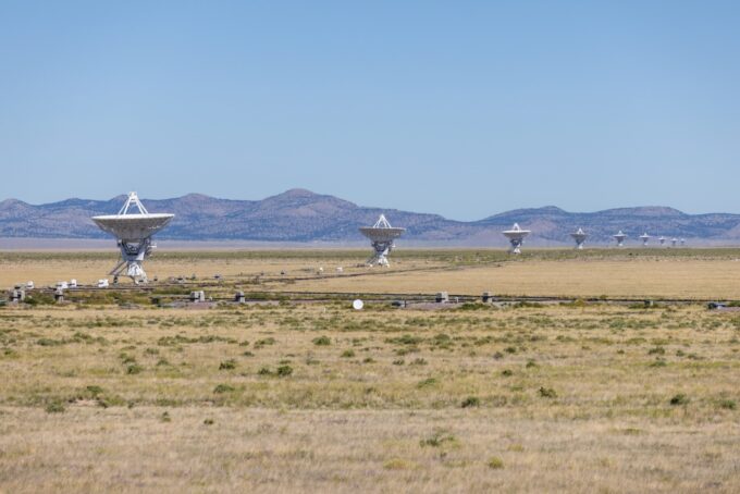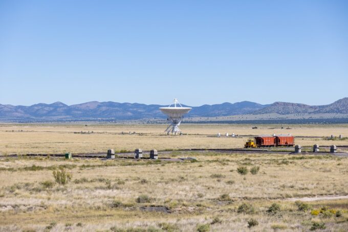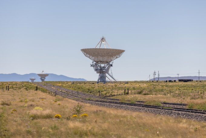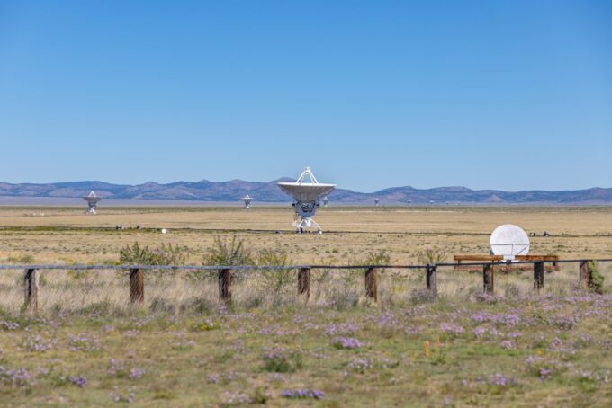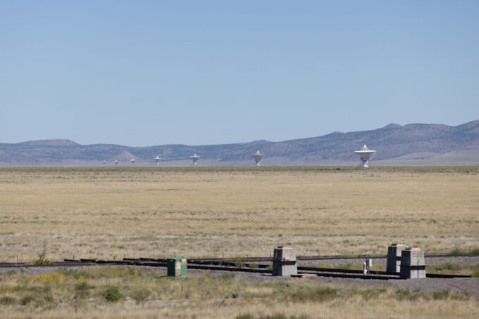 Very Large Array to obserwatorium radioastronomiczne, które składa się z 28 gigantycznych radioteleskopów. Każdy zamontowany jest na szynach, tak aby można było je swobodnie przemieszczać i zmieniać odległość między nimi. My akurat trafiliśmy na bardzo szerokie rozłożenie i trudno było uzyskać efekt, gdzie widać jedną antenę obok siebie. Niestety na to nie mieliśmy już wpływu, ani nawet wiedzy w jakiej odległości od siebie znajdują się anteny.