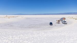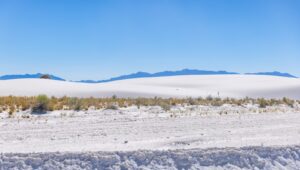 Nasza ciekawość na temat Very Large Array została zaspokojona i możemy ruszać dalej. Jedziemy w końcu do parku narodowego White Sands. Mamy przed sobą jeszcze kawałek drogi, ale w tych okolicach nie ma praktycznie ruchu samochodowego i możemy bez przeszkód szybko pokonać ten odcinek. Do parku dojeżdżamy po południu, odwiedzamy Visitors Center i ruszamy na przejażdżkę po białej pustyni.