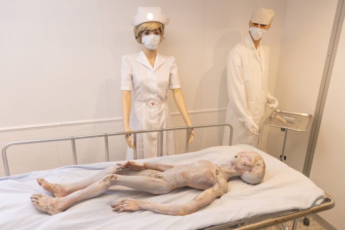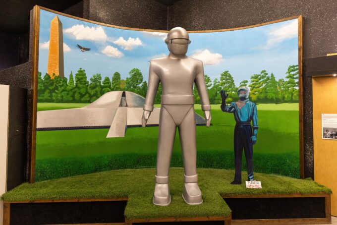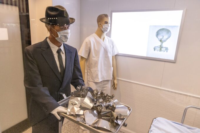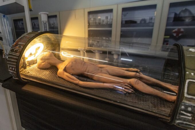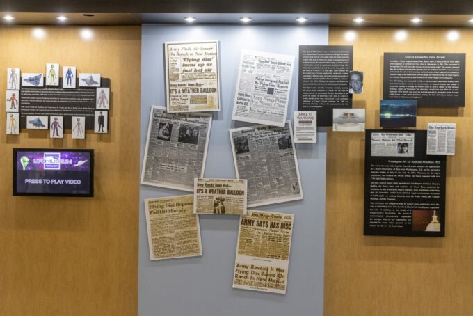 Po dwóch godzinach jazdy docieramy na miejsce. Już na wjeździe zamiast tradycyjnej tablicy z nawą miejscowości wita nas okolicznościowy znak ze statkiem kosmicznym i istotami pozaziemskimi. Nie mamy za wiele czasu, większość miejsc otwarta jest do godziny 17:00. Wybraliśmy najciekawszą naszym zdaniem atrakcję, na którą powinno nam wystarczyć czasu, czyli International UFO Museum and Research Center. Znajduje się tutaj obszerna biblioteka i sporo eksponatów skupiających się na incydencie w Roswell, ale także historia spotkań z UFO, kręgów zbożowych, Strefy 51 czy uprowadzeń ludzi przez UFO. Oczywiście nie mogło zabraknąć sklepu z pamiątkami. Samo muzeum zaś jest warte zobaczenia i znajduje się w nim sporo ciekawych rzeczy. .