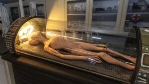 Po dwóch godzinach jazdy docieramy na miejsce. Już na wjeździe zamiast tradycyjnej tablicy z nawą miejscowości wita nas okolicznościowy znak ze statkiem kosmicznym i istotami pozaziemskimi. Nie mamy za wiele czasu, większość miejsc otwarta jest do godziny 17:00. Wybraliśmy najciekawszą naszym zdaniem atrakcję, na którą powinno nam wystarczyć czasu, czyli International UFO Museum and Research Center. Znajduje się tutaj obszerna biblioteka i sporo eksponatów skupiających się na incydencie w Roswell, ale także historia spotkań z UFO, kręgów zbożowych, Strefy 51 czy uprowadzeń ludzi przez UFO. Oczywiście nie mogło zabraknąć sklepu z pamiątkami. Samo muzeum zaś jest warte zobaczenia i znajduje się w nim sporo ciekawych rzeczy. .