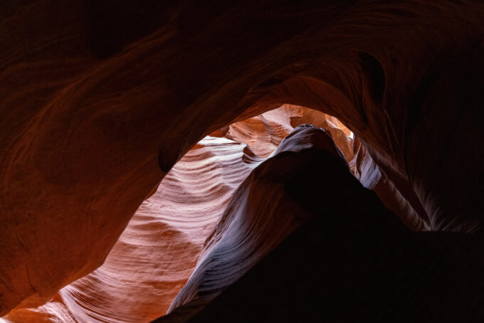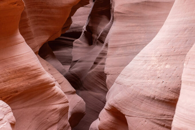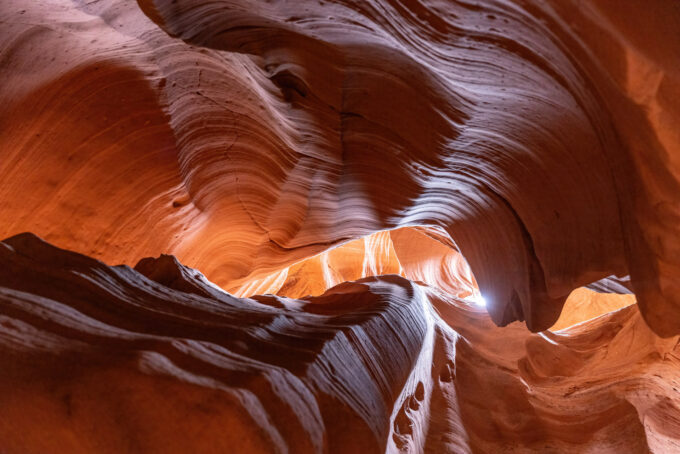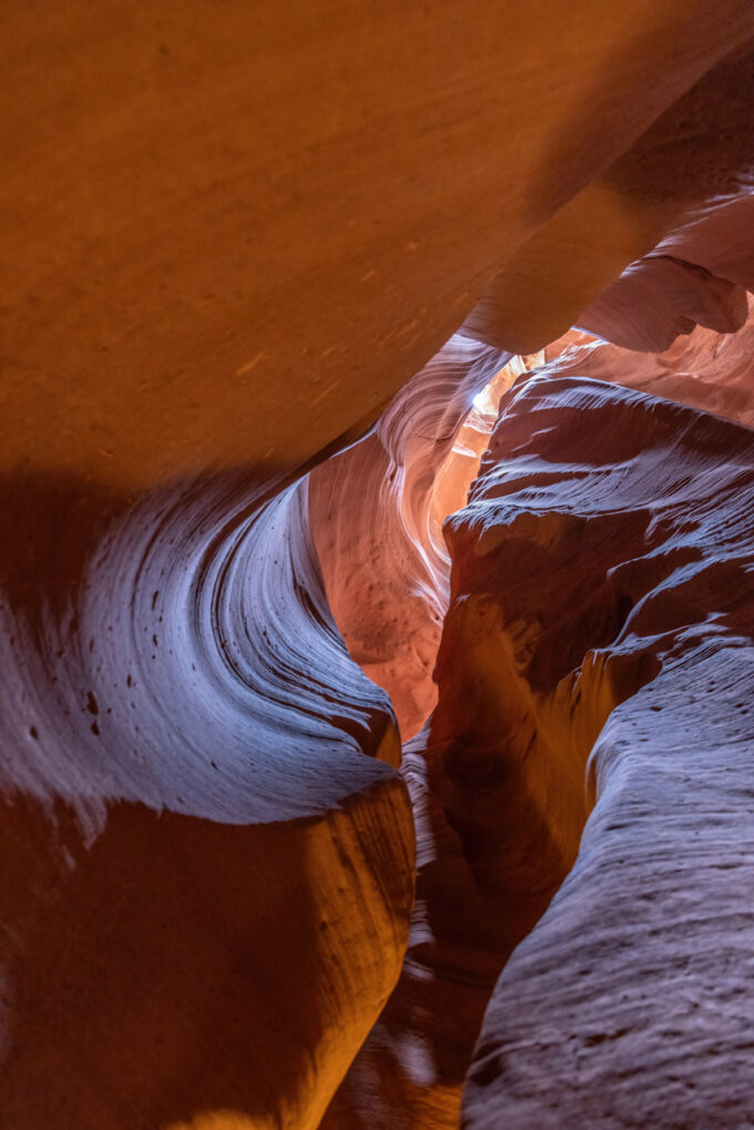 Kanion Antylopy X jest dużo mniejszy niż dolna i górna część, ale jest również fascynujący i robi tak samo dobre wrażenie. Brakowało trochę ciasnych przejść, których w górnym kanionie jest znacznie więcej. Tam również światło operuje inaczej, ale być może to efekt tego, że tym razem po prostu nie trafiliśmy z pogodą.