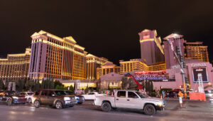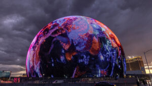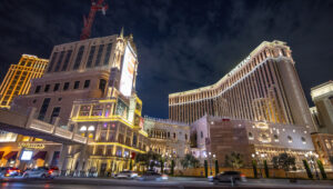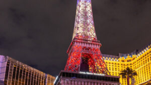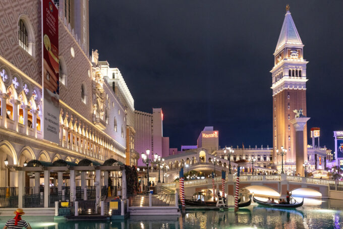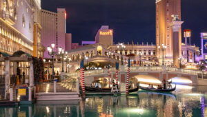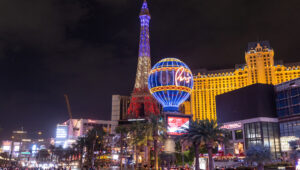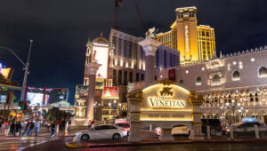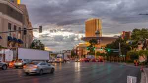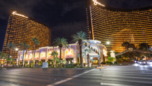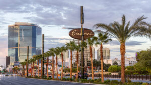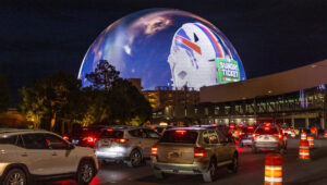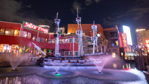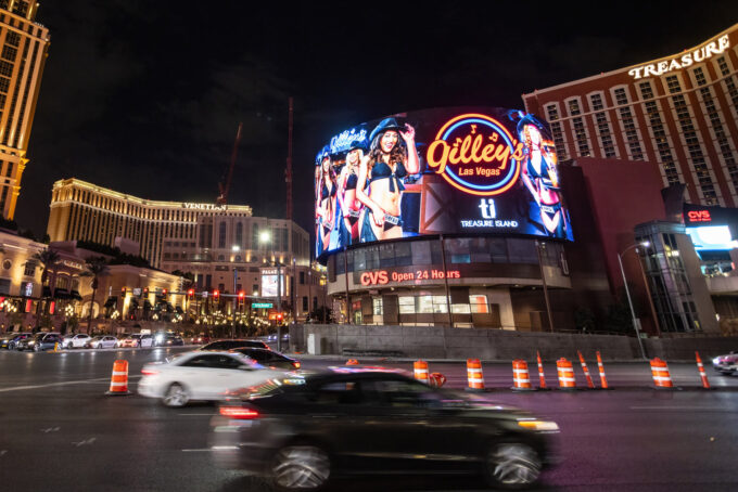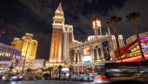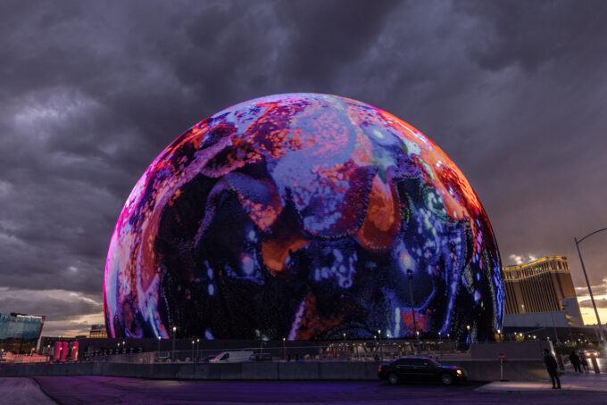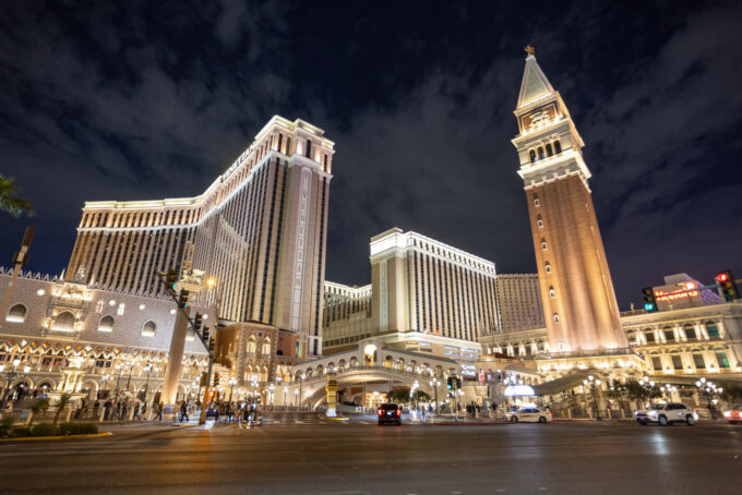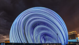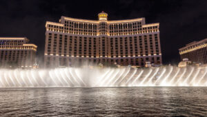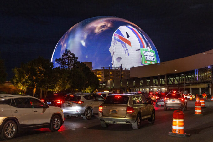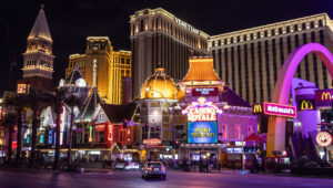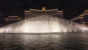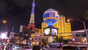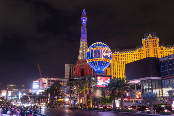 Zostawialiśmy samochód w hotelu i ruszyliśmy na słynny Las Vegas Strip – takie “amerykańskie Krupówki” tylko, że nieporównywalnie większe. Blisko siedem kilometrów deptaka, to kilkadziesiąt hoteli o najwyższym standardzie, kasyna, restauracje, sklepy z pamiątkami, czy sklepy najbardziej znanych amerykańskich marek. Ulica to festiwal kolorów. Nic do siebie nie pasuje. Właściciele obiektów prześcigają się, kto zrobi większą i bardziej widowiskową konstrukcję. Idąc głównym deptakiem mijamy hotel, którego charakterystyczną cechą jest wierna kopia wieży z Placu św. Marka oraz słynne mosty Weneckie, po drugiej stronie natomiast mamy bujną zieleń z wodospadami hotelu Mirage. Są też dwa okręty, rzymskie rzeźby, kolumny i łuki, później wieża Eiffel’a z balonem braci Montgolifier, aż dochodzi się do części, gdzie nad ulicą dominuje Statua Wolności i Empire State Building charakterystyczne dla Nowego Yorku. Jest nawet Sfinks i piramida! Fantazja amerykanów nie zna granic, a Las Vegas Strip to w dalszym ciągu plac budowy. Część starych obiektów jest wyburzana i zastępowana nowymi. Powstaje nowy stadion sportowy. Najnowszy obiekt to tak zwana Sfera. Usytuowana jest trochę z tyłu i żeby do niej dość trzeba odbić nieco z głównej ulicy, ale warto podejść, bo robi niesamowite wrażenie. Jest ogromna i na dodatek w całości wykonana ze świateł LED, co czyni ją obecnie największym ekranem na świecie.