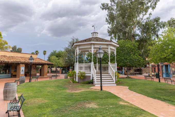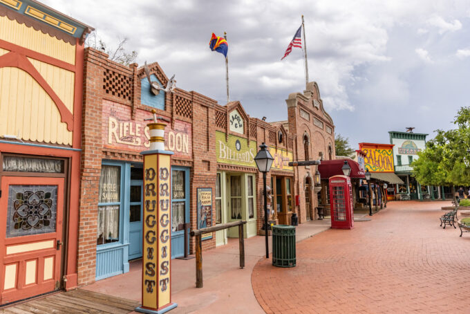Trail Dust Town zostało zbudowane w 1961 roku i szybko stało się ulubionym miejscem w Tucson do spędzania czasu. Architektura miejsca nawiązywała do czasów westernów. Miejsce to cieszyło się popularnością zaledwie 10 lat. W 1971 roku wybuchł tu pożar, który strawił niemalże doszczętnie całe miejsce. Jednakże właściciele Trail Dust Town nie poddali się i szybko przystąpili do odbudowy atrakcji. Z powrotem ruszyła ona w 1972 roku, a jej głównym punktem była restauracja Pinnacle Peak Steakhouse, która istnieje do dzisiaj, serwując najpopularniejsze dania Ameryki.