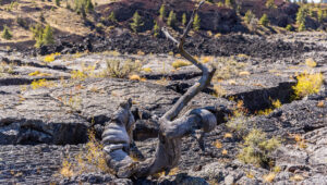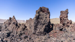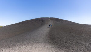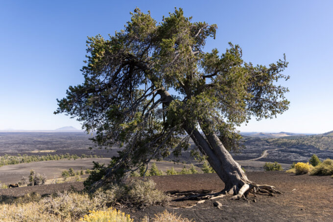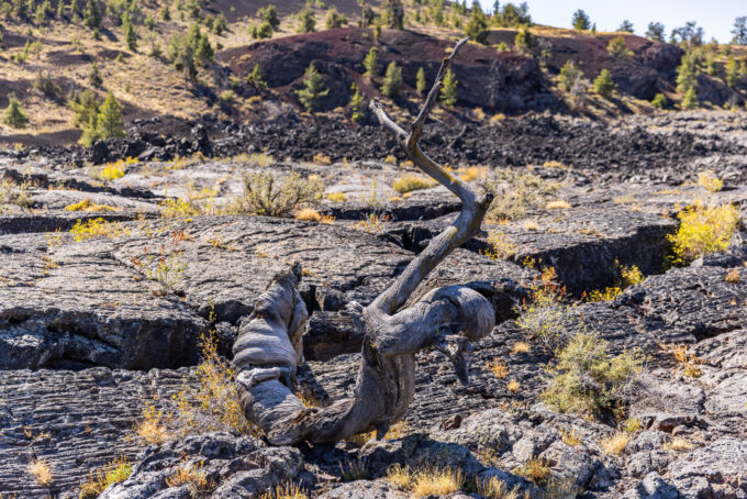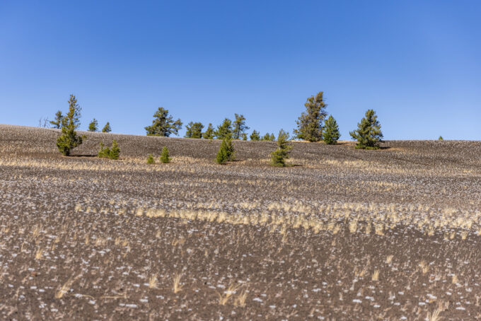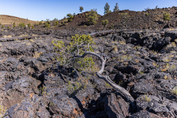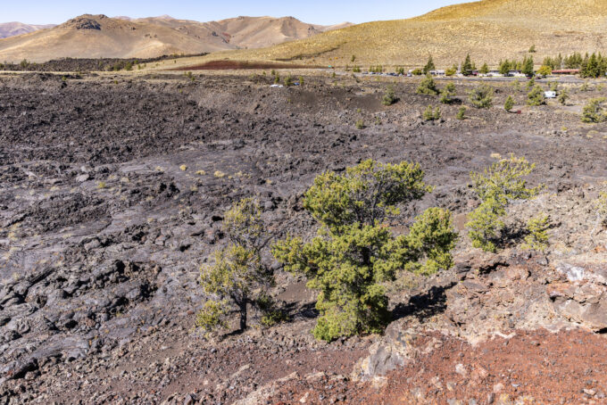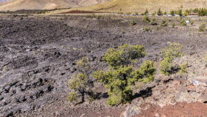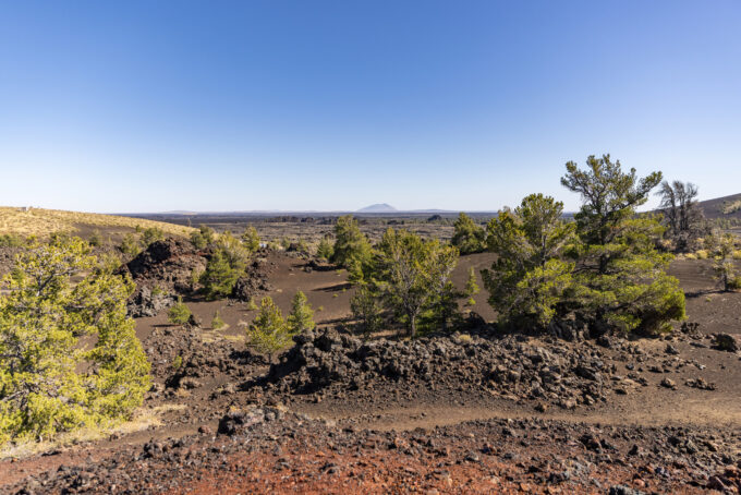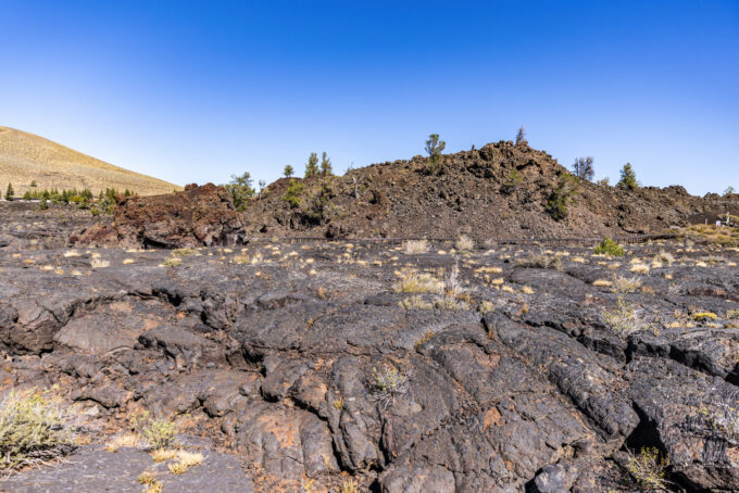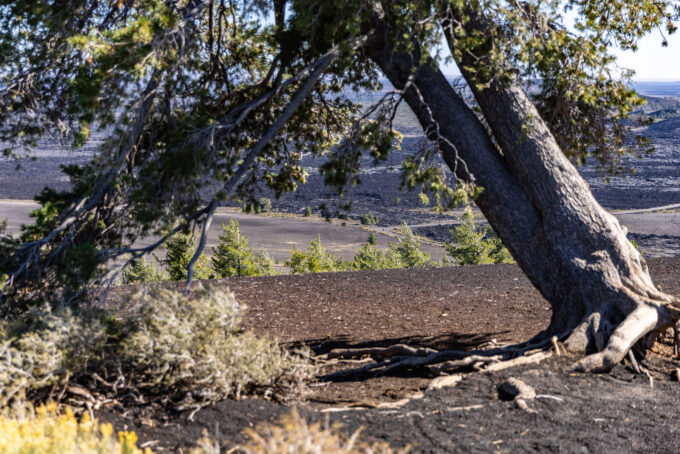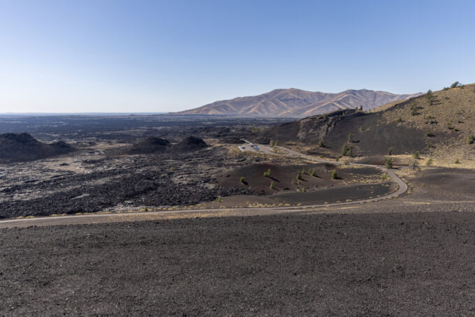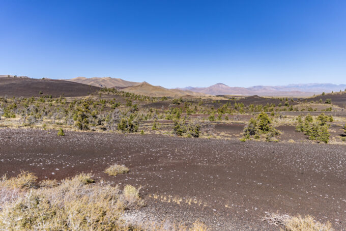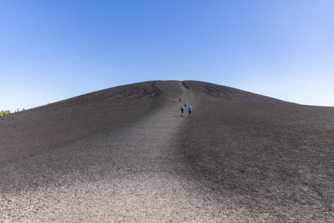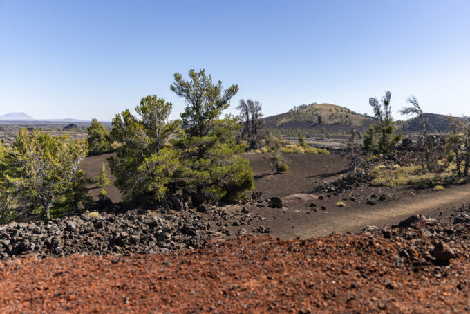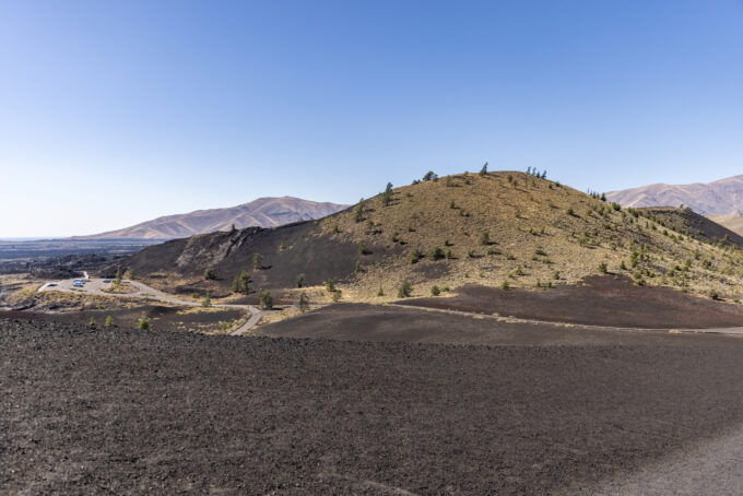 Jednym z ciekawszych miejsce w parku to Inferno Cone. Jest to ogromne, czarne wzgórze utworzone z wulkanicznego popiołu. Krótka, ale stroma wspinaczka na szczyt nagrodziła mnie zapierającym dech w piersiach widokiem – cała dolina Craters of the Moon rozciągała się przede mną niczym morze zastygłej lawy. Było bezwietrznie, bardzo sucho, a pod stopami chrzęściły drobne, wulkaniczne kamyki.