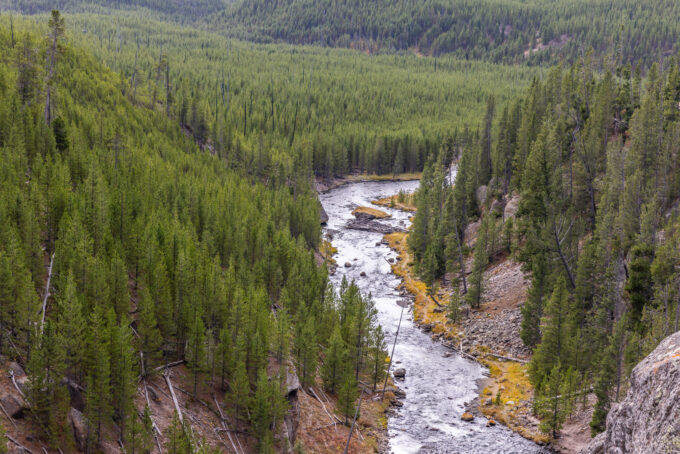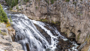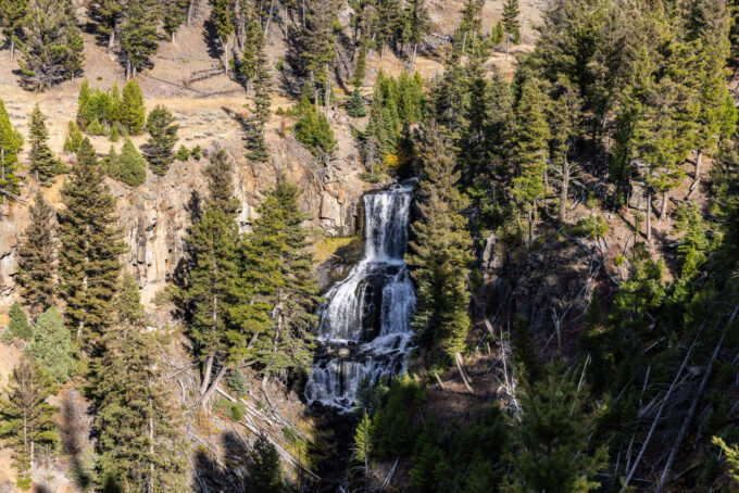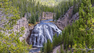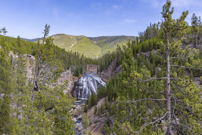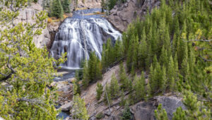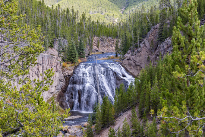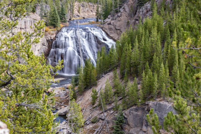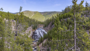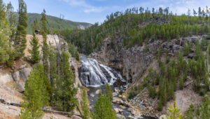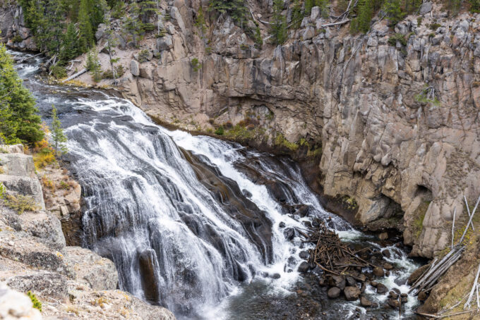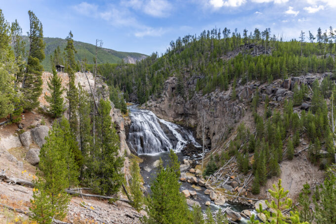 Na samym początku zatrzymaliśmy się przy malowniczym wodospadzie Gibbon Falls, który można podziwiać z kilkuset metrowego deptaka, który ciągnie się wzdłuż rzeki Gibbon.