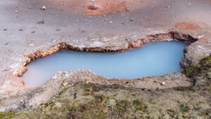 Następnie udaliśmy się do miejsca o ciekawej nazwie – Artist Paint Pots Trail, które w dosłownym tłumaczeniu znaczy „garnki na farny artysty”. Ta nazwa wzięła się zapewne z tego, że miejsce to mieni się niemalże wszystkimi kolorami. W ziemi jest kilkanaście niewielkich dziur z gorącą wodą, z której każda jest innego koloru.