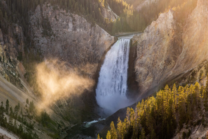 Dzień zbliżał się ku końcowi i czas było wracać do hotelu. Po drodze widzieliśmy duże stada bizonów, za daleko jednak, żeby zrobić dobre zdjęcia, ale był też niedźwiadek, którego obserwowała grupa kilkuset osób, ale ten również schowany w zaroślach nie chciał pokazać się do obiektywu. Wycieczkę zakończyliśmy w okolicach wodospadu Tower Fall, którego wysokość to aż 40 metrów. Tam postanowiliśmy zrobić kilka zdjęć o zachodzie słońca i udać się do hotelu, aby następnego dnia rozpocząć przygodę wśród gejzerów.