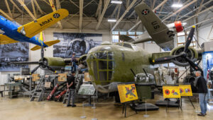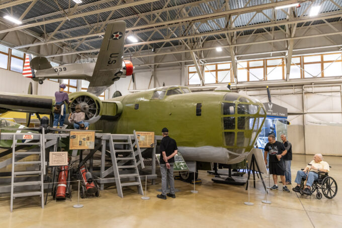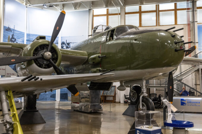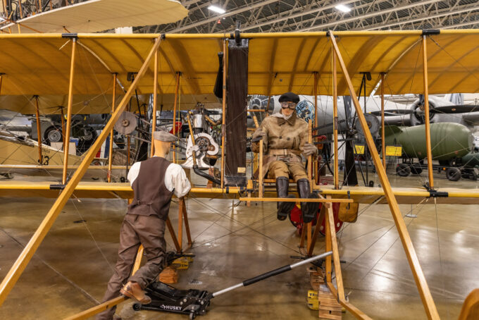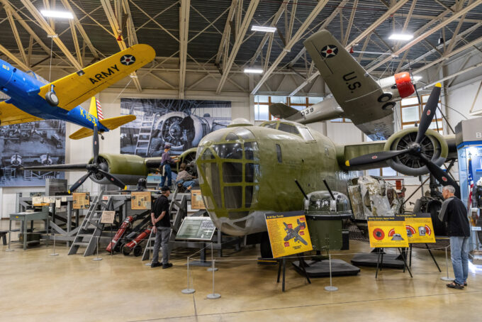 Wnętrze Hill Aerospace Museum podzielone jest na kilka hal tematycznych i chronologicznych. Zwiedzanie zaczyna się od pionierskich czasów lotnictwa – są tu modele i oryginalne elementy samolotów z okresu I wojny światowej. Później przechodzimy do II wojny światowej, gdzie eksponowane są samoloty takie jak P-51 Mustang, B-17 Flying Fortress, a także wiele artefaktów związanych z codziennym życiem pilotów, mechaników i personelu pomocniczego.