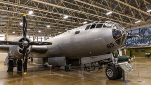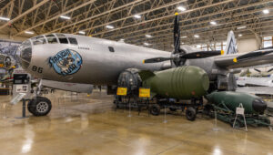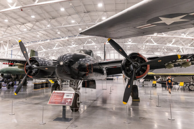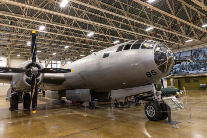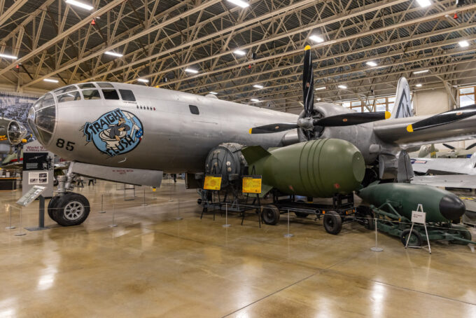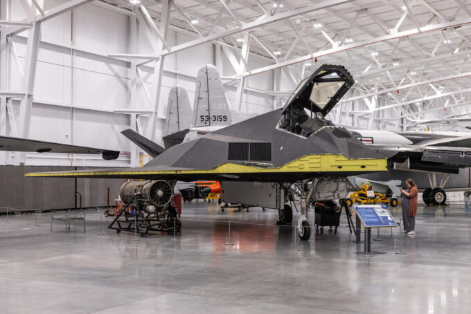 Z parkingu było widać ogromne samoloty ustawione na zewnątrz budynku – olbrzymie konstrukcje, które od dekad budzą respekt. B-52 Stratofortress, jeden z najbardziej znanych bombowców strategicznych, dosłownie dominuje przestrzeń. Obok niego stoi B1-B Lancer, jedyny naddźwiękowy bombowiec latający dla amerykańskiej armii. Widzieć go z bliska to zupełnie inne doświadczenie niż oglądać zdjęcia – czarny, opływowy kadłub wygląda jak żywcem wyjęty z filmu science fiction.