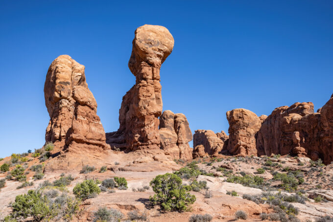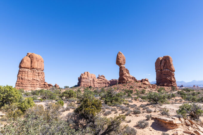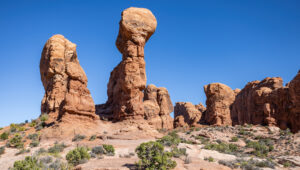 - Balanced Rock (0,3 km pętla): ogromna skała spoczywająca na wąskiej podstawie; symbol równowagi natury.