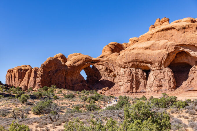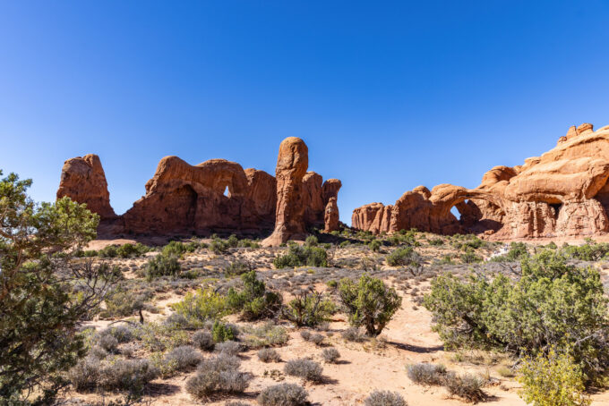 - Double Arch (0,5 km): imponujący układ dwóch łuków połączonych u podstawy; magiczne światło przy zachodzie.